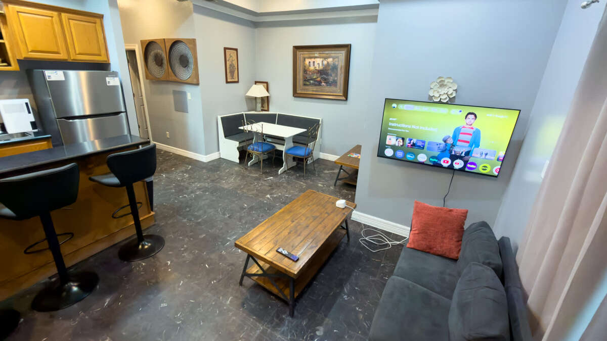 The fully equipped kitchen includes pots, pans, utensils, and dinnerware, making it easy to cook and save a little money during your stay. A washer and dryer are also provided—especially helpful for families or longer trips. BBQ grills are welcome; we simply ask that grilling be done in front of the building rather than near the shared pool area.