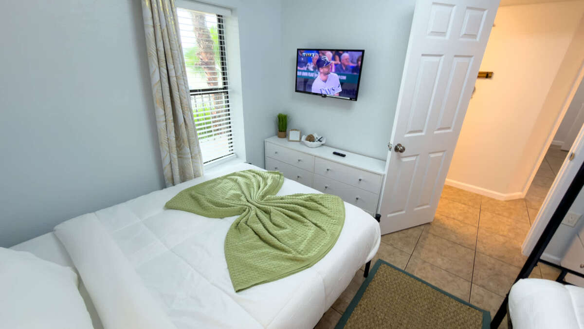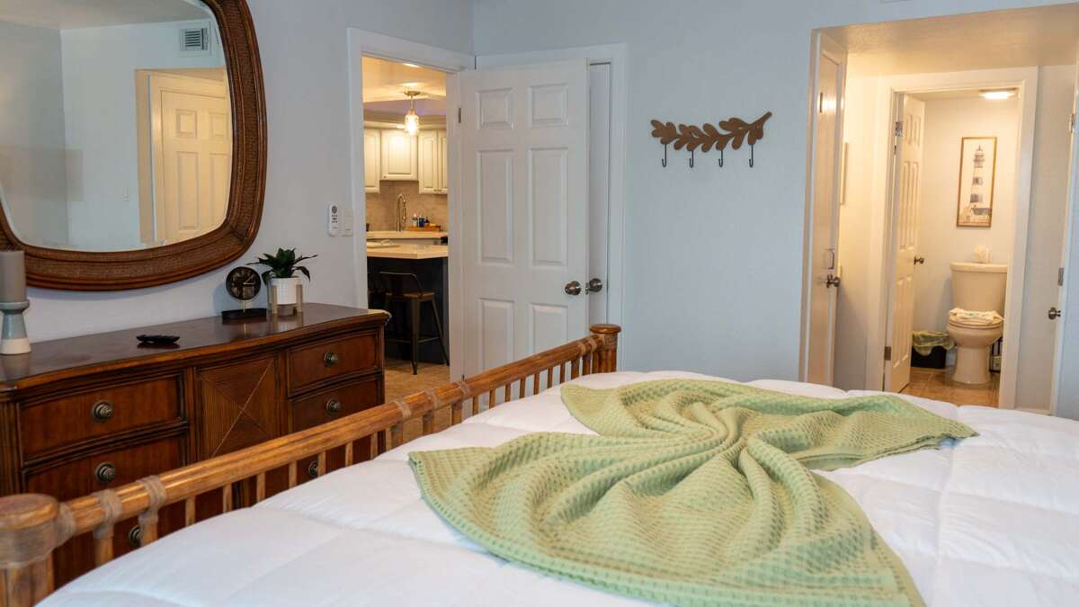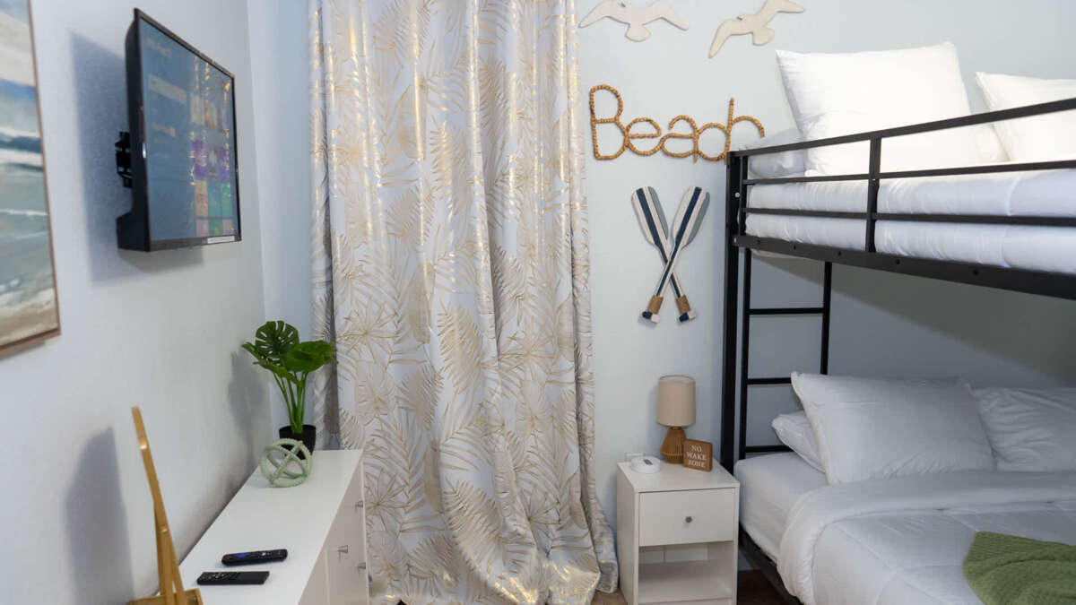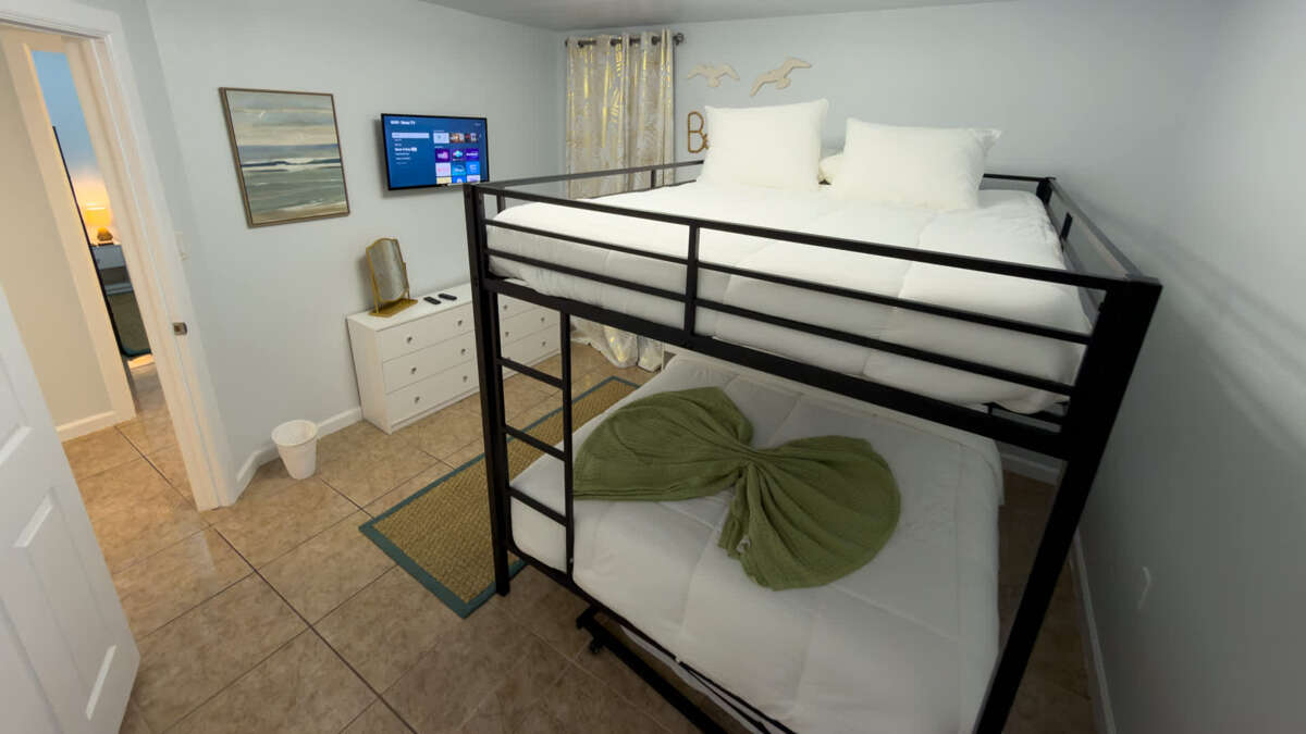 Each bedroom is equipped with its own flat screen/smart TV for your favorite app - the main TV the living room has local cable for sports & local news enthusiasts. The bedding and sleeping space in this condo is really remarkable - the master bedroom features a comfy Cali King bed, en suite private bath & beachview too. Everything you want without question. The 2nd guest bedroom is simply loaded up for kiddos beds - queen over queen bunks with single trundle under, the 3rd guest bedroom is twin over twin bunk with a separate full sized bed. Don’t forget the pull out sectional sleeper sofa in living room. You simply will NOT find a 3 bedroom condo at Saida Towers with this ample bedding.