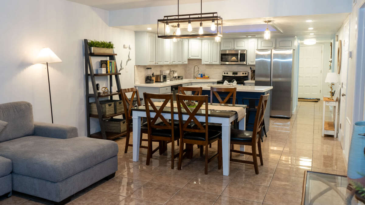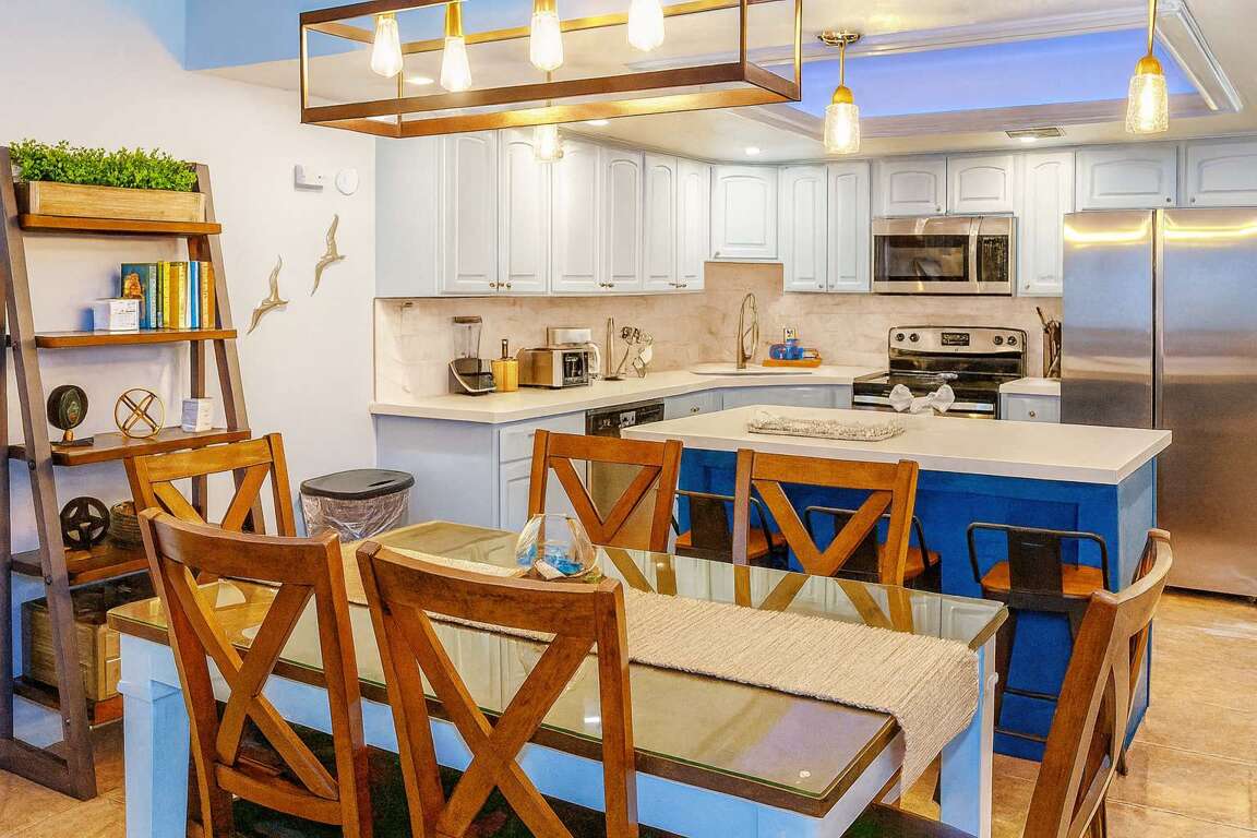 We tried to think of all possible amenities a family would enjoy here, from beach towel hooks as you enter to the convenient in unit stackable washer & dryer (rare find!). Eating space for all 10, plus a giant sectional couch with sleeper sofa & smart TV to wind down to a memorable family night or enjoy some blended margaritas.