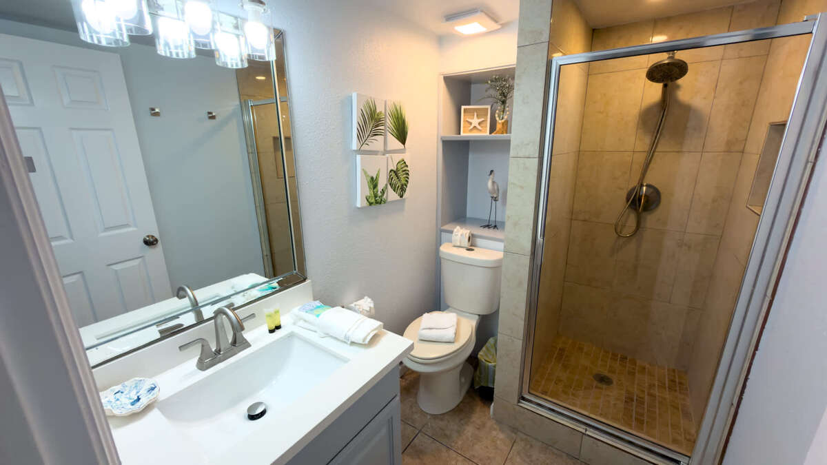The two full baths with walk in showers are clean & ready for a large family or multi family use to split with privacy & convenience in mind. The provided gas BBQ grill is a super rare amenity at Saida - while we do not provide the LP gas tank for safety reasons, please bring one if you plan on using. Please do note that Saida unfortunately DOES NOT have guest parking, max is two cars strictly enforced at entrance. This 3rd floor condo does have an elevator, though not fully ADA compliant the walk in showers make it fairly accessible. Inquire for specifics as needed, Please do bring a beach wagon, beach gear and/or beach towels those we don’t provide