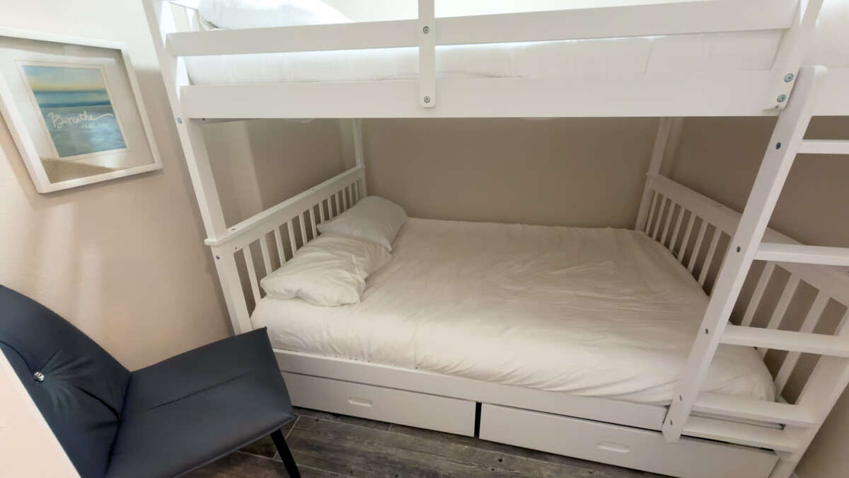 *3 full bedroom with one of the largest master bedroom suites you will find on the Island incredibly spacious for a condo. Unique bunk bed cutout room with fun slider door for kiddos yet full sized bunk beds