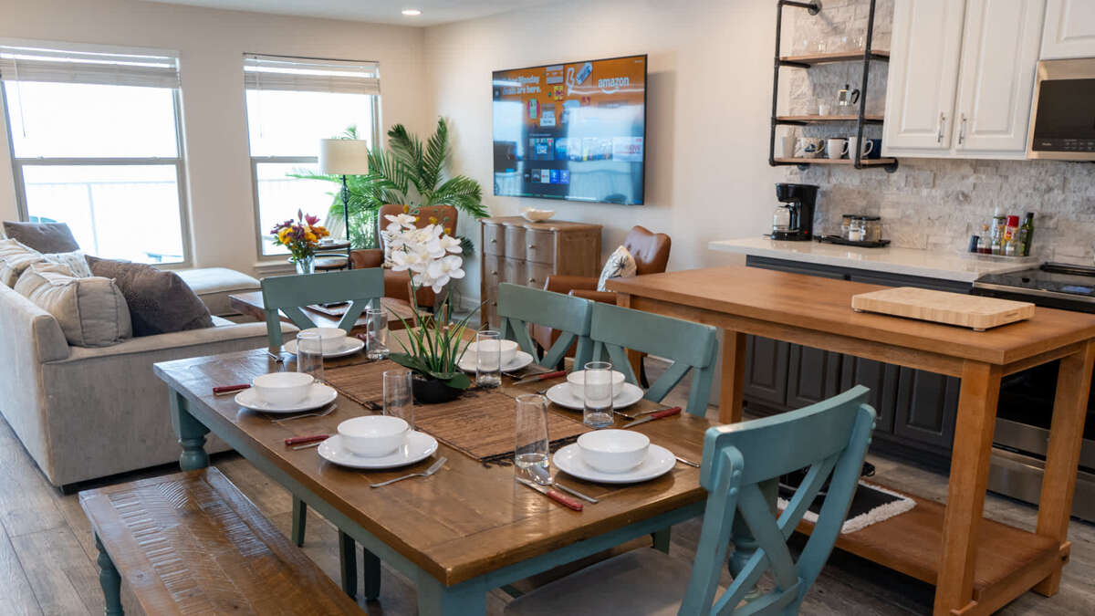 Our penthouse is not just for impressing your significant others, but the privacy & fun it affords your family is well worth it for an elevated experience. We have what we consider standard convenience items like included bedding, fresh towels & linens,starter packs on guest toiletries plus beginning amount of trash bags, dishwasher pods, dish soap, paper towels & such PLUS a few more things like coffee, de caf, hot tea, creamer, sweetener, filters, non stick cooking spray & salt/peppar.