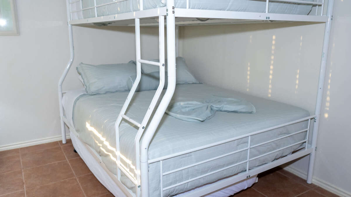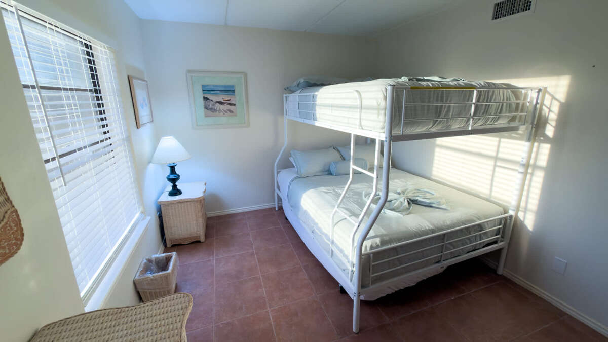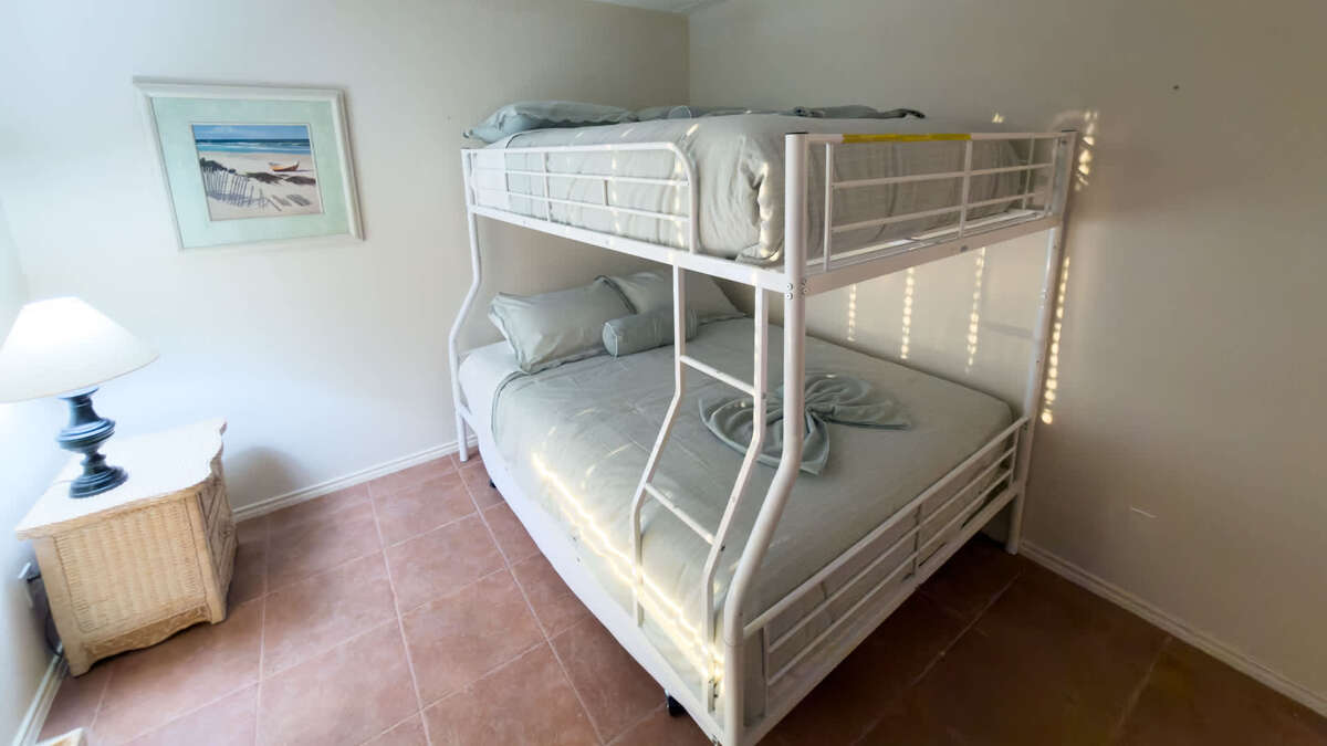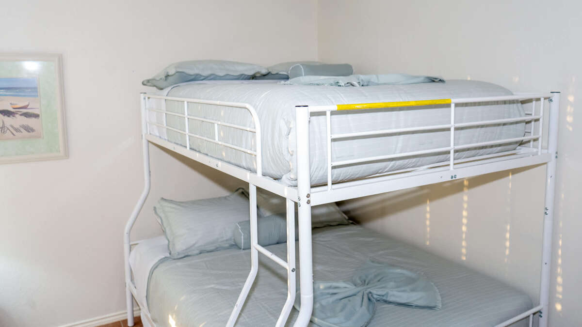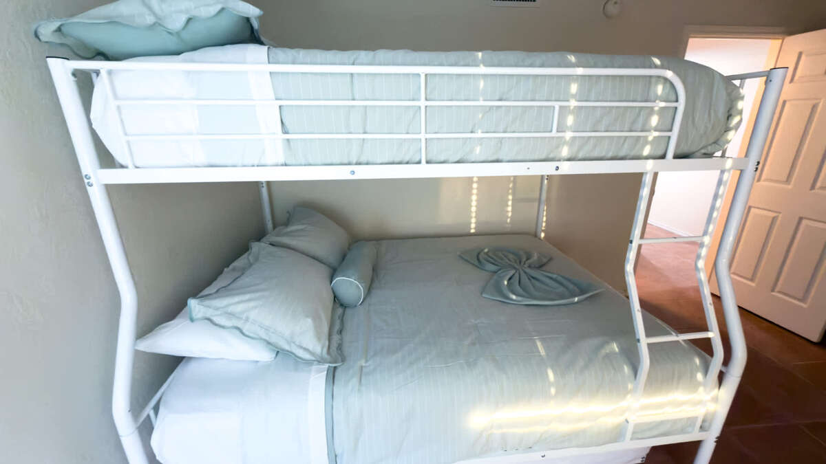 * Abundant sleeping space for families quite above average. Exact sleeping space is a king in master (with ensuite full bath) & a queen over queen adult sized bunk bed plus a single trundle pull out. Additionally in living room you will find a small pull out couch just in case that will sleep up to 8 if you are considering kiddos