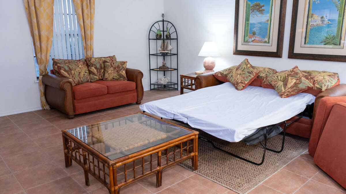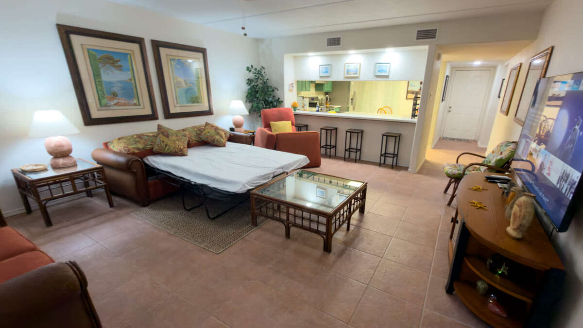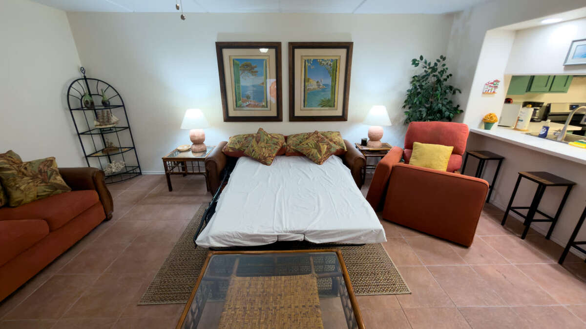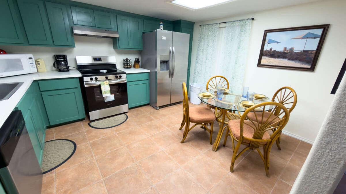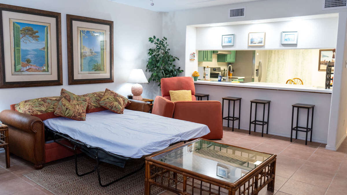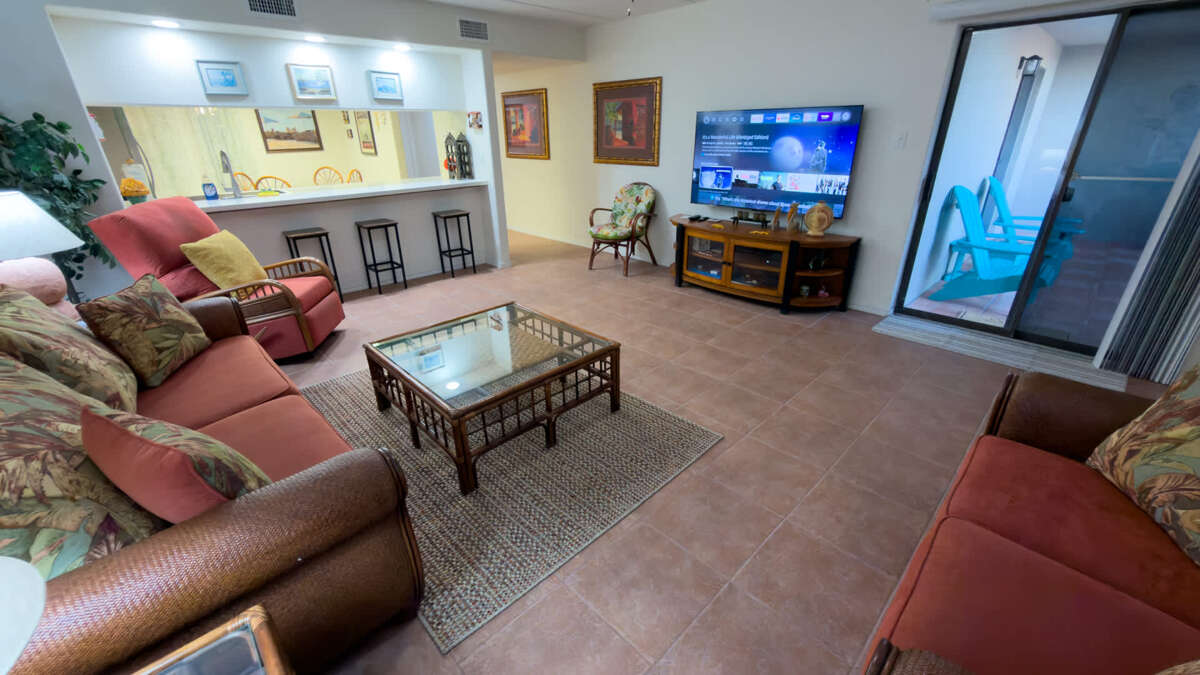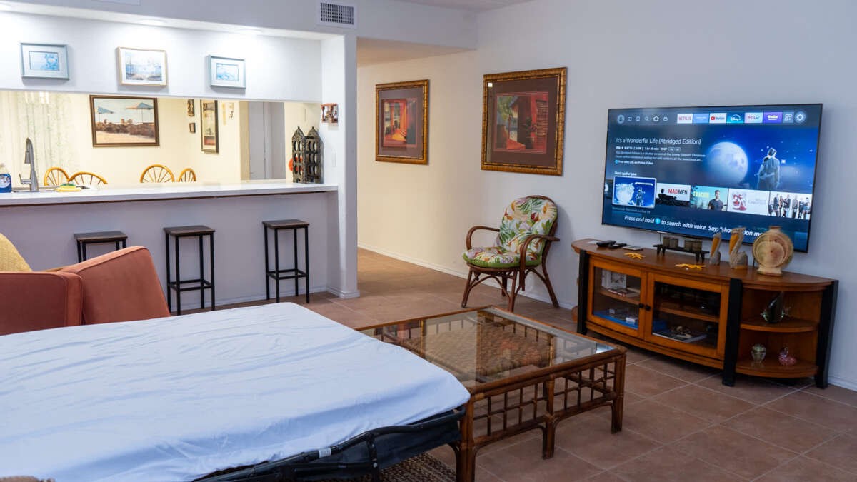 With an eat in counter to do some work on your laptop plus good seating space sleeper sofa & smart TV to wind down to a memorable family game or move night or enjoy some margaritas.