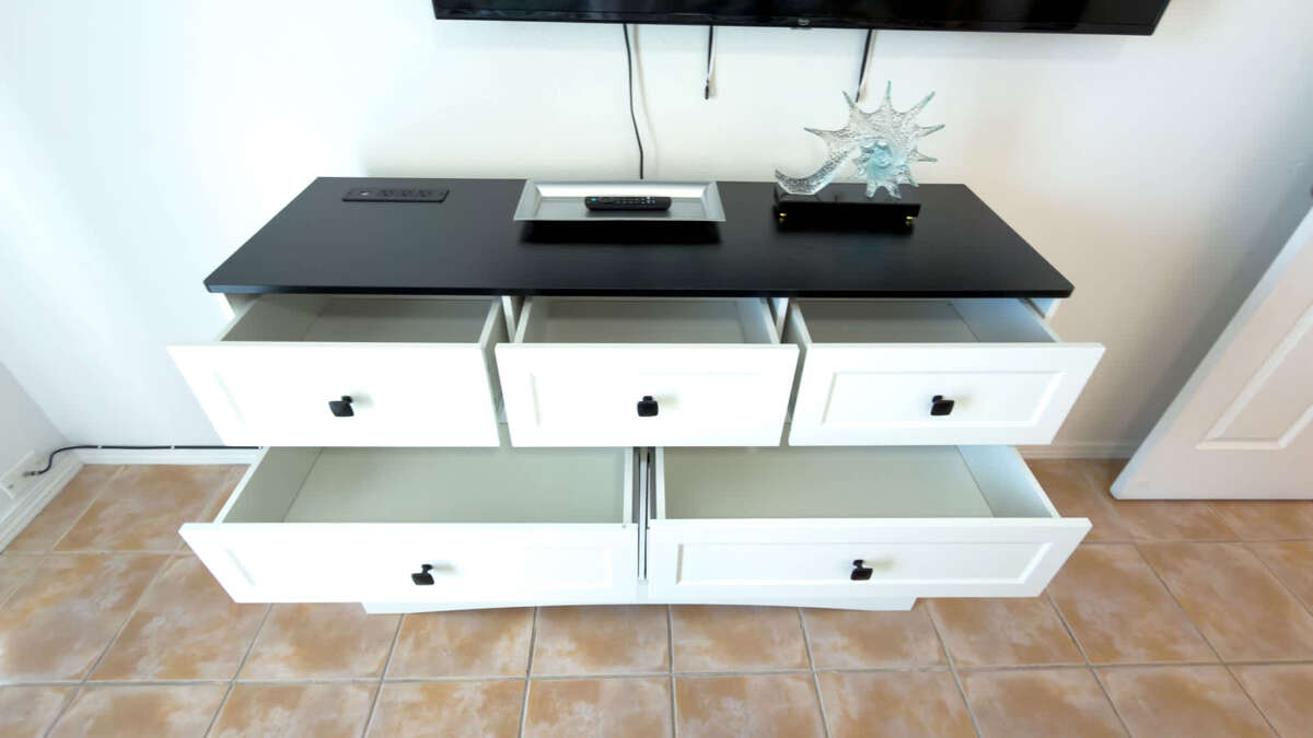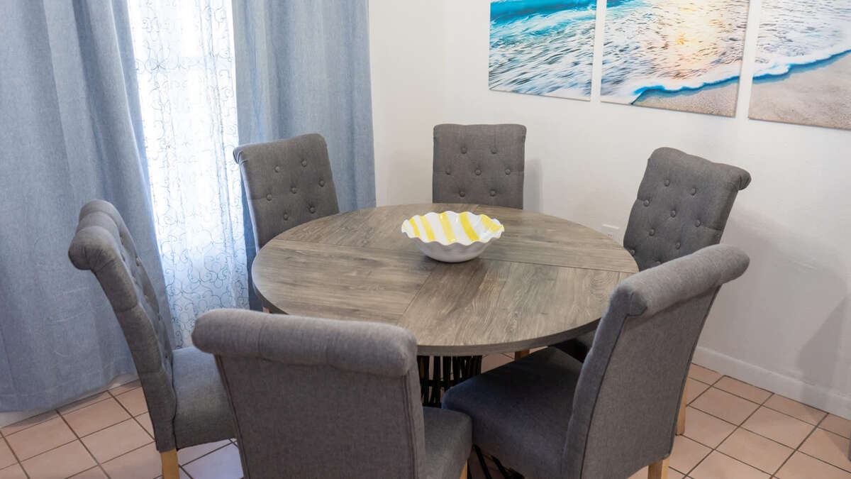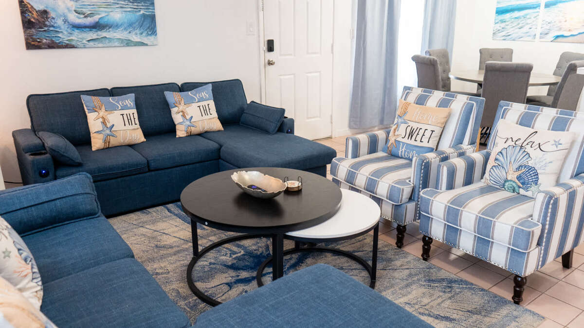 The living room provides space to unwind after the beach for family movie nights or board games (yes, we provide them).