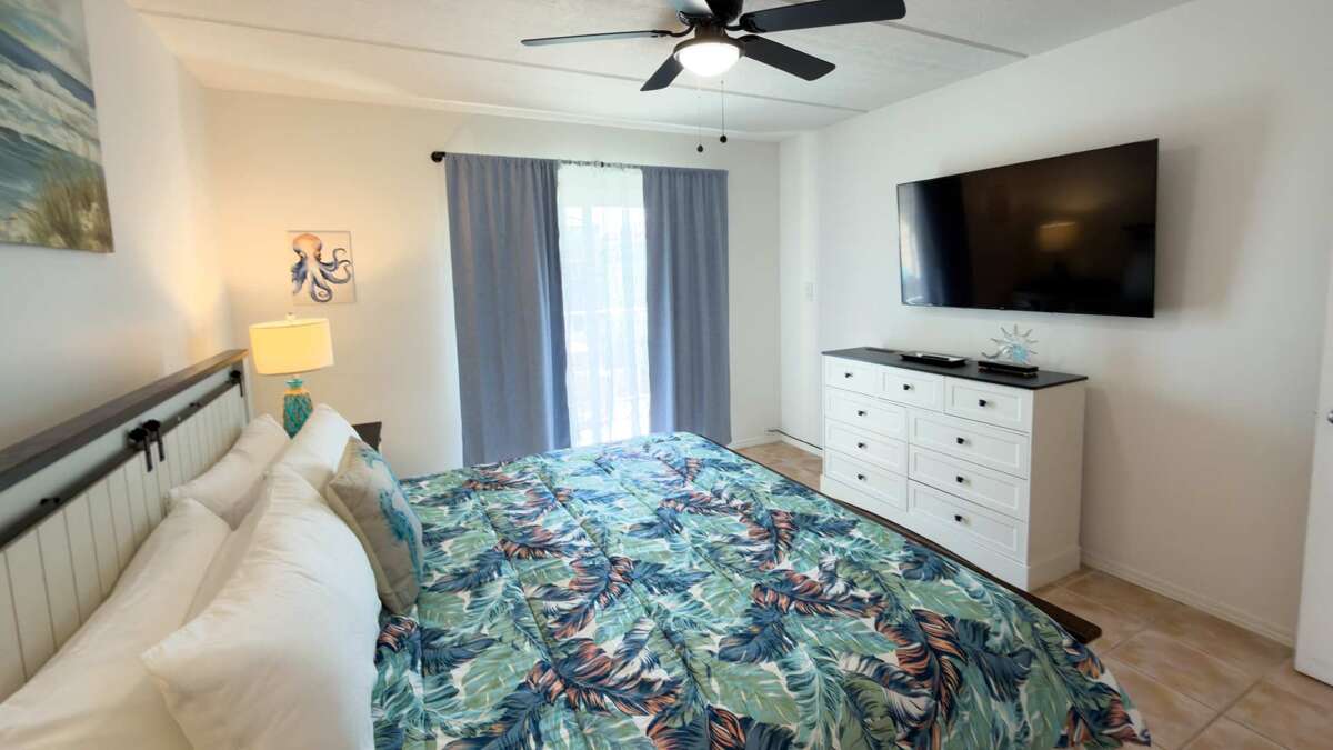 Second-floor 2 bedroom / 2 bath condo just steps from the beach in one of the most walkable areas of South Padre Island. Located approximately 99 steps from public beach access, Fiesta Sol #216 offers a pool, private patio, in-unit washer & dryer for your convenience, Smart Flat Screen TVs for your apps, plus a fully equipped kitchen ready to cool great family meals — all within walking distance to dozens of restaurants, bars, coffee shops, mini golf, arcades, go-karts, and local entertainment.