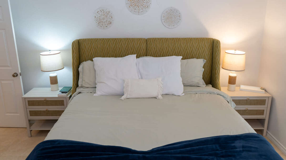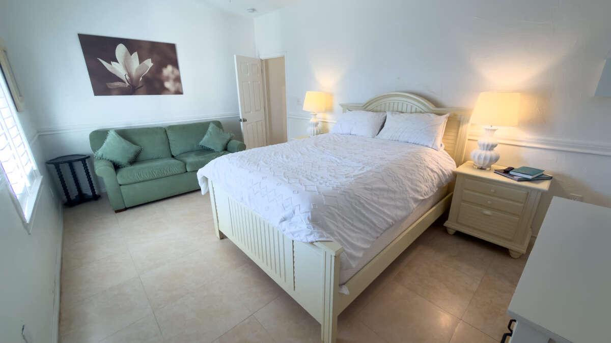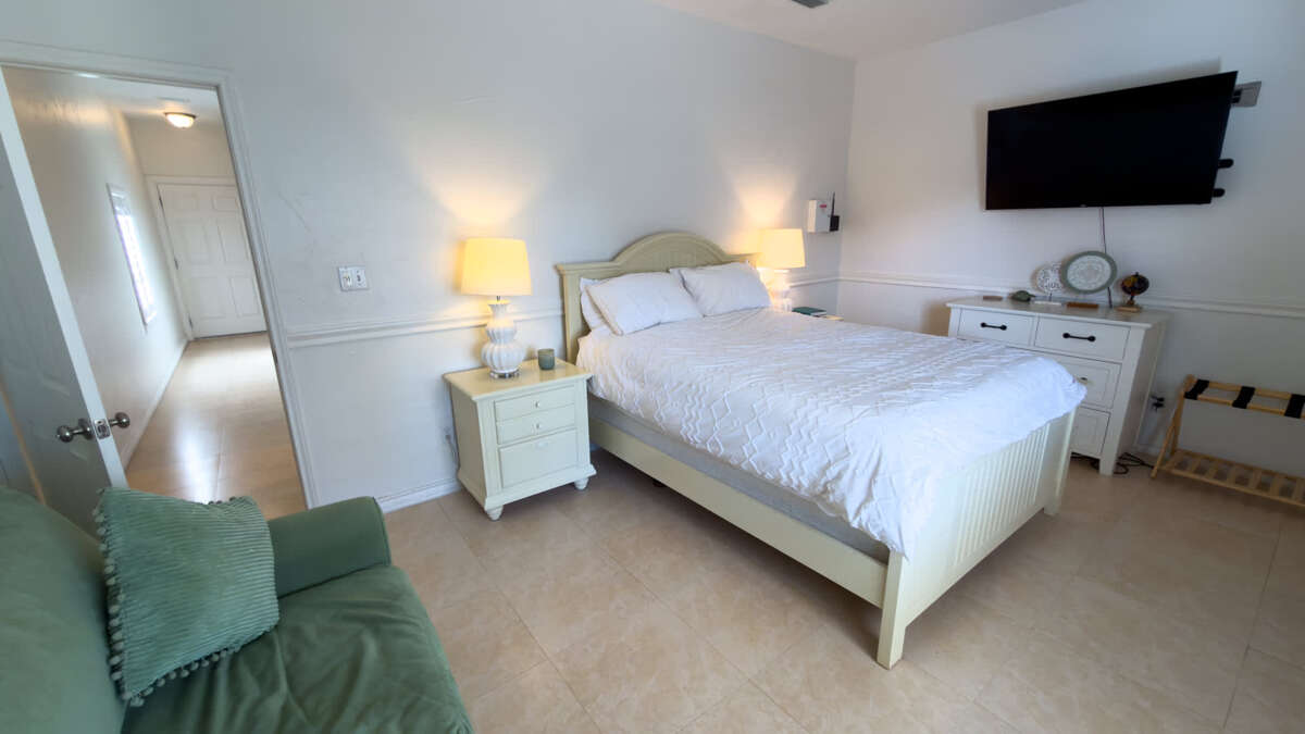 1st Guest Bedroom - 1 Queen bed and 1 couch that folds down to a Full-sized bed