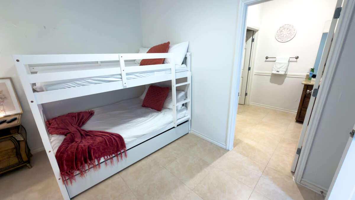 2nd Guest Bedroom - Adult-sized bunk bed featuring 2 Full-sized beds plus a single trundle pull-out underneath
