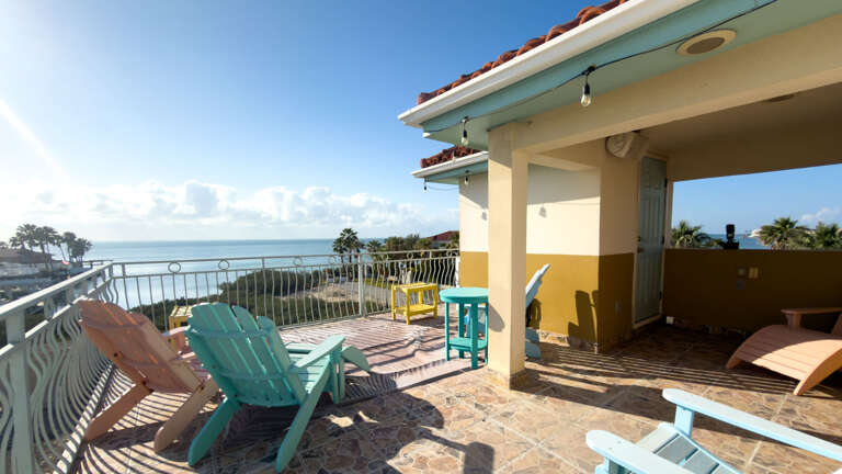 Accessed via spiral staircase, this elevated space provides unobstructed Laguna Madre views and breathtaking sunset moments. Perfect for evening margaritas or morning coffee with fresh bay air.