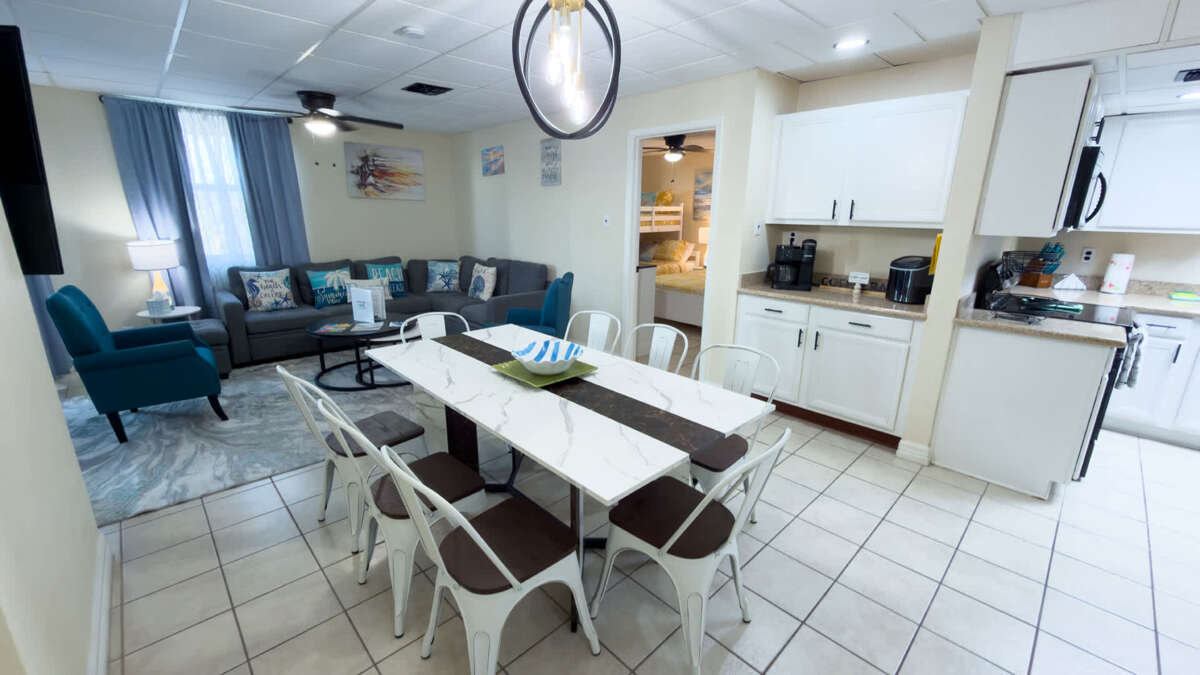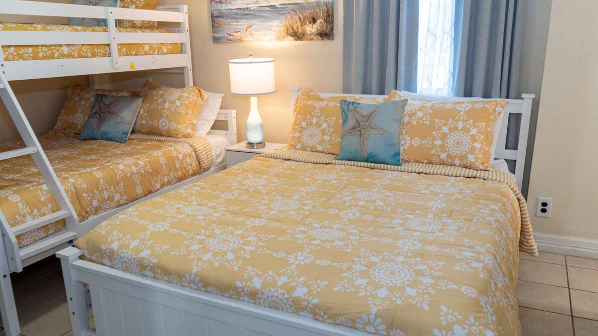 Direct bayfront 3rd floor condo at Galleon Bay on the Laguna Madre with true waterfront sunset views, community boat docks, on-site fishing, pool, heated jacuzzi, elevator, in-unit washer & dryer, and private patio overlooking the water. 2 bedroom, 2 bath sleeping up to 6. Located just 2.5 blocks from public beach access, this residence offers the rare combination of bayfront living and easy Gulf access. THE SETTING — TRUE WATERFRONT Enjoy access to all the amenities this waterfront condo has to offer. Guests have full access to the entire 3rd-floor condo, including two bedrooms, two bathrooms, a fully equipped kitchen, and a living room that opens to a private patio with stunning bay views. The condo features an elevator for easy access. Outside, you can enjoy the community boat docks (first come, first serve) for fishing or launching a small boat. There's also a community pool and heated jacuzzi overlooking the water, and community use charcoal pits for grilling (bring your own charcoal). Beach access is just a short 2.5-block walk away. One covered parking space is reserved for your use, and additional street parking may be available. Nestled in the heart of South Padre Island, our condo at Galleon Bay offers a prime location for enjoying all the island has to offer. You're just a short 2.5-block stroll from the public beach access, where you can spend your days soaking up the sun and playing in the Gulf waters. When you're not at the beach, explore the local dining scene, with a variety of restaurants within a short drive offering fresh seafood and other culinary delights. For your shopping needs, you'll find convenient options nearby. The area is known for its laid-back atmosphere and stunning natural beauty, making it a perfect spot for a relaxing getaway. Whether you're interested in water sports, fishing, or simply unwinding, you'll find plenty to keep you entertained. Enjoy the convenience of being close to everything while still enjoying the tranquility of our bayfront location. Getting around South Padre Island is easy! While a car is convenient, you'll find that many attractions, including the beach, are within walking distance or a short drive. The public beach access is just 2.5 blocks away. For those arriving by air, the closest airport is Brownsville South Padre Island International Airport (BRO), approximately a 35-minute drive. Parking is available: one covered, reserved space is provided, and additional street parking may be available. Consider a golf cart rental for exploring the island at your leisure. The island also has a public bus system, but services are limited; check local schedules for routes and times. Please note: Check-in is at 3 PM and check-out is at 11 AM. A digital rental agreement and photo ID are required prior to arrival. You'll receive door codes by 3 PM on your arrival day. For stays in March, there's a $25 per person HOA wristband fee (collected beforehand). Only one parking permit is provided, and it must be displayed. Additional guest parking isn't available on-site, but you may find free parking nearby on W. Polaris Street or at the post office. We provide starter supplies of toiletries and cleaning items, but they are not replenished. Beach towels and toys are not provided. Please be aware that WiFi can be spotty during peak usage. Up to one dog is allowed with a $75 cleaning fee; non-disclosure will result in eviction. Smoking and parties are strictly prohibited. Quiet hours are from 10 PM to 9 AM. The primary guest must be 23+ years old. Under 23 allowed only with prior approval and refundable damage deposit. We are dedicated to ensuring you have a fantastic stay! We are available to assist you throughout your visit. You can reach us via the platform messaging system, which we monitor regularly. We strive to respond to all inquiries within a few hours, but please allow up to 24 hours for a response, especially during peak seasons or weekends. For urgent matters, please don't hesitate to send a message, and we'll do our best to assist you promptly. Our local office is also available at 2600 Padre Blvd, if you should need anything. Have a great time!
