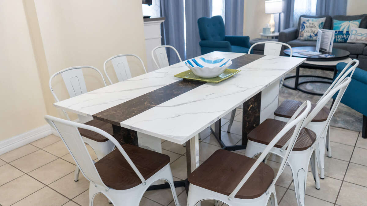 The layout keeps the family in view while you prepare meals. Washer and dryer are located inside the condo for added convenience.
