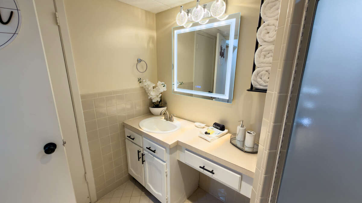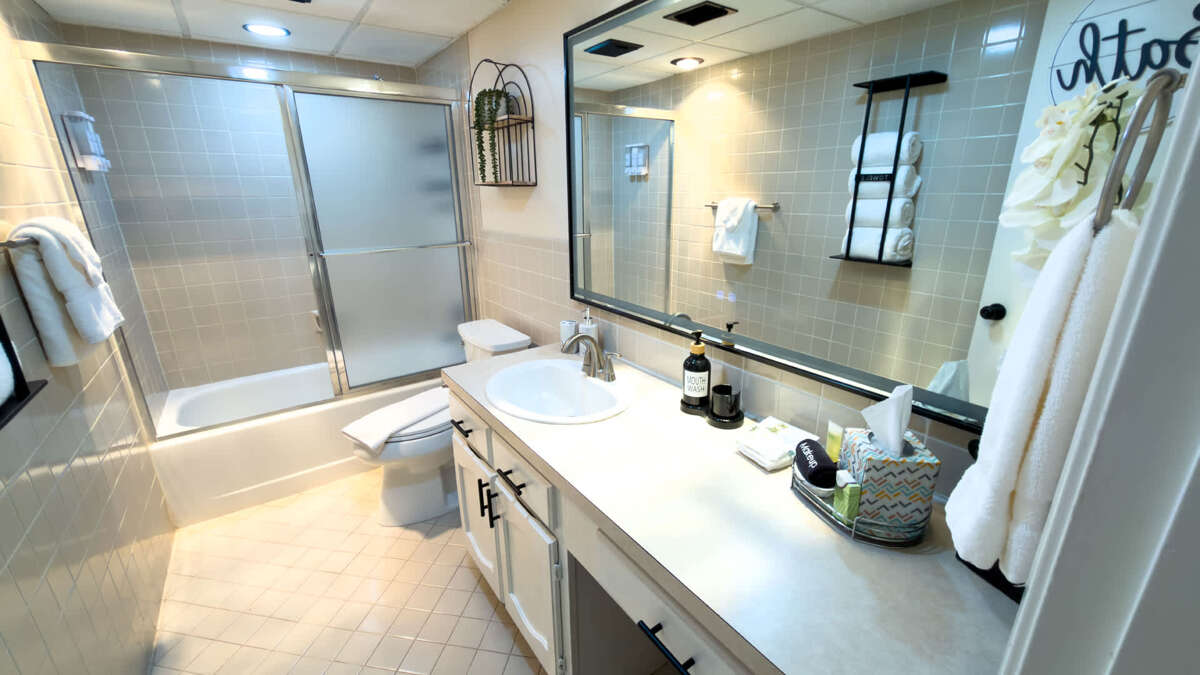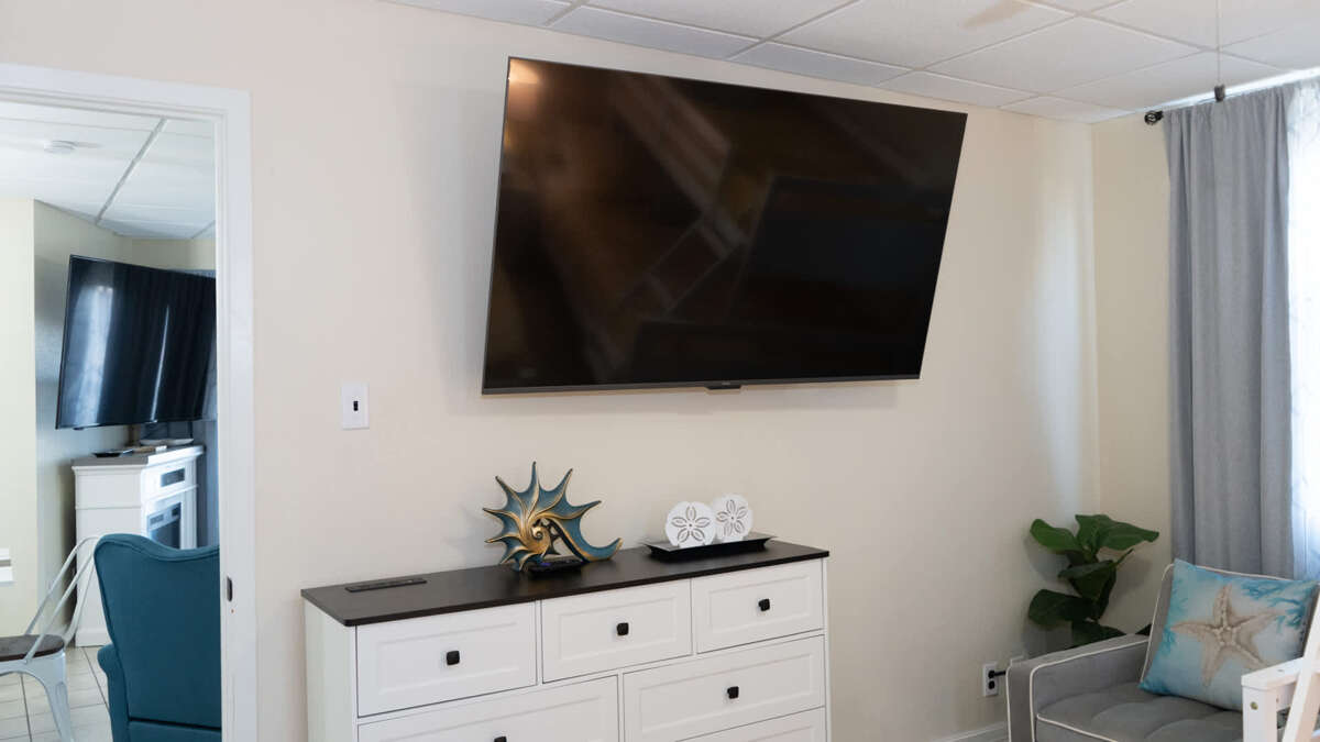 Smart HD flat screen TVs are located in the living room and both bedrooms.