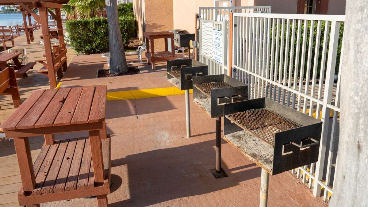 By the pool and jacuzzi area Galleon Bay does have community use charcoal pits or BBQ grills - just bring your own charcoal they are first come, first serve.