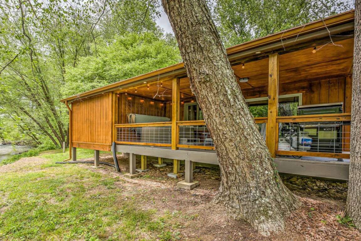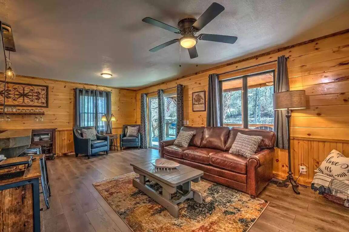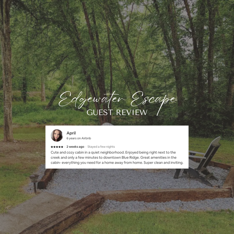 Dream of escaping to a place where the only thing that matters is making lasting memories? Look no further than Edgewater Escape. Our peaceful creek-front cabin offers 100ft stretch of waterfront for fishing, floating, and river wading - you'll love the serenity of Hemptown Creek! Take the Blue Ridge Train through the mountains and along winding rivers to nearby attractions. When you're back, curl up on the covered deck with a book, have s’mores over the fire pit, or soak in the private hot tub. Spend quality time together in the living area with an open floor plan and modern design. Cozy up on the leather sofa and stream Netflix, Amazon Prime, Hulu, Disney+, etc. on the Smart TV (we do not provide cable, you must log in to any streaming provider you wish to watch). An electric fireplace helps create that perfect cozy cabin vibe. The additional seating area is perfect for your morning coffee. Kitchen and Dining The well-appointed kitchen has new stainless-steel appliances, and all the pots, pans and dinnerware you might need if you choose to stay in and dine. The local grocery store is within a short driving distance to stock up on any necessities. To start your day off right, there is a duo coffee pot that can make a full pot or use individual Kurig pods – starter coffee is provided. There is not a dishwasher in the cabin, but we provide Dawn dish soap and basic cleaning supplies. Bed & Bath This home sleeps 4 guests in two bedrooms, each with a comfy king-size bed and smart TVs where you can log into any of your favorite streaming apps. The primary suite has a king bed and en-suite bath which is also where you’ll find the full-size washer and dryer (Tide pods are provided for your convenience). The second bedroom also features a king bed and is adjacent to the 2nd bathroom. Luxury spa towels, shampoo, conditioner & body wash are provided for your stay. Outdoor Area & Amenities Gather on the covered deck to rest in the shade overlooking Hemptown Creek, grill meals on the gas grill (propane provided), or soak in the views from your private hot tub. The hot tub is drained, sanitized, and refilled between guest reservations for your comfort and protection. Please be sure to only use the beach towels provided for use outside (creek or hot tub) so we can keep our white bath towels white. We’d also recommend making time for s'mores around the fire pit, and you can pick up a bundle of firewood at just about every grocery store on your way to the cabin, or right in downtown Mineral Bluff. Boasting 100 feet of Creekside property, we recommend taking a dip in the creek, tubing down to the Toccoa River, or casting a line for some of the best trout fishing in the area on the famed Hemptown creek. You'll need to bring your own fishing gear, canoe or tubes. Extra perks & more details High-speed Wi-Fi (150 Mbps), full-size washer and dryer, Adirondack chairs on the deck and around the firepit, all linens provided, including XL towels for the hot tub, extra plush and oversized bath towels, shampoo, conditioner, body wash and basic cleaning supplies. Smart home features include Nest thermostat to make your stay comfortable and smart lock on the front door. The property is equipped with exterior security cameras for your safety as well as to protect the property. One camera on the front of the house faces the front porch with views towards the driveway and the second camera is on the back of the house pointed at the creek so we can monitor for any flooding or water issues from the creek. There are no cameras inside the cabin Distance to Local Attractions - Lake Blue Ridge Marina: 5 miles | 10 minutes - Downtown Blue Ridge: 6.6 miles | 12 minutes - Serenberry Vineyards: 9 miles | 16 minutes - Copperhill, TN: 9 miles | 14 minutes - Blairsville: 21 miles | 24 minutes - Ellijay: 22 miles | 29 minutes Edgewater Escape is equipped with a smart lock that allows for contactless check in and check out without you having to keep up with keys. Your access code will be unique to you and provided on the day of check in. When you arrive, all roads are paved until you reach the gravel driveway, but it is flat and should be easy to navigate in any vehicle. There is plenty of parking right in front of the cabin, with additional space just a few feet up the driveway. Please be sure to keep all vehicles on the gravel-paved path. You will have full access to all amenities on the property. The only areas where guests are not allowed are the outdoor storage shed, locked owners’ cabinet/closet, and the crawl space under the house. Feel free to message us anytime. We will also provide contact numbers at check-in just in case a call is needed. If we don't answer leave a message and we will call right back. Mineral Bluff is a charming town located in the northern part of Georgia, known for its scenic beauty and outdoor recreational opportunities. The town is surrounded by rolling hills and valleys, with the Chattahoochee National Forest offering hiking trails, fishing spots, and other outdoor activities. Mineral Bluff has a rich history dating back to the early 1800s, when the area was first explored for its mineral resources. Today, the town is a popular tourist destination, attracting visitors who come to enjoy the peaceful atmosphere and natural beauty of the area. Overall, Mineral Bluff is a great place to visit or call home for those who love nature and a slower pace of life. When you arrive, all roads are paved until you reach the gravel driveway, but it is flat and should be easy to navigate in any vehicle. There is plenty of parking right in front of the cabin, with additional space just a few feet up the driveway. The property is equipped with exterior security cameras for your safety as well as to protect the property. One camera on the front of the house faces the front porch with views towards the driveway and the second camera is on the back of the house pointed at the creek so we can monitor for any floodi