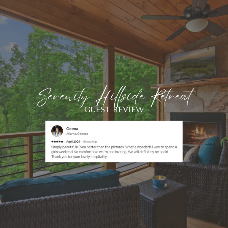 Come stay at Serenity Hillside Retreat, one of 33 beautiful homes managed by Southern Charm Vacay. We’re here to answer any questions you may have and to help make your stay as enjoyable and relaxing as possible.