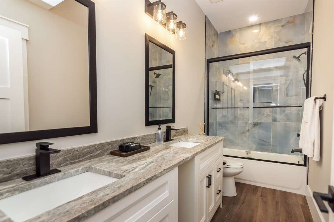 The spacious owner’s suite is also on the main level, featuring a spa-like bathroom with dual vanities, a large walk-in STEAM shower, and a walk-in closet. After a day of adventures, unwind in this private retreat designed for comfort. You’ll also find a stylish powder room and convenient laundry on this floor.