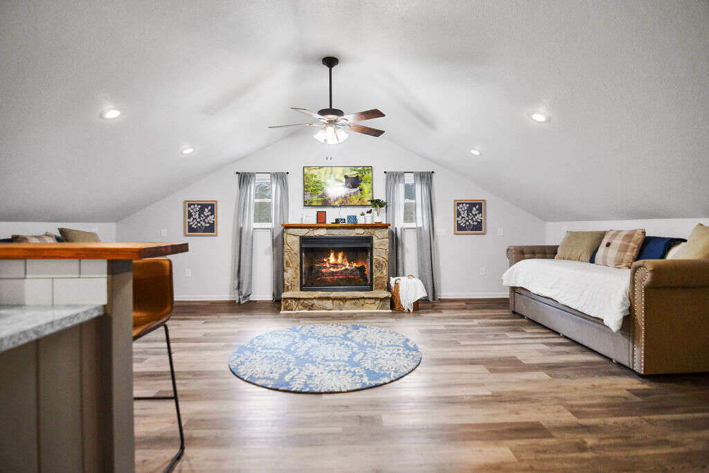 While the location of this cabin might make you feel as though you're in the middle of nowhere, you're just two short miles from all the shops, galleries, breweries, and incredible restaurants of downtown Blue Ridge. Take the whole family down to the Lilly Pad Village, just about six miles south, where you can mine for gems, play mini-golf on their nine-hole course, or fish their catch-and-release pond. And for an incredible hiking experience, pack your camera and your swimsuit and visit Fall Branch Falls, just a little over nine miles away.