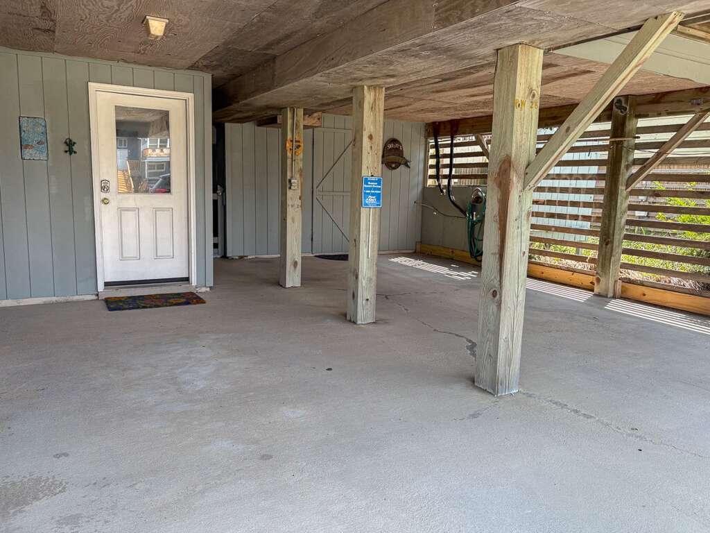 <p>Ground level dry entry through the carport; convenient outdoor shower to rinse off after the beach; direct access to the beach path and dune deck for effortless trips to the ocean; ideal for unloading and kicking off your stay in comfort.</p>