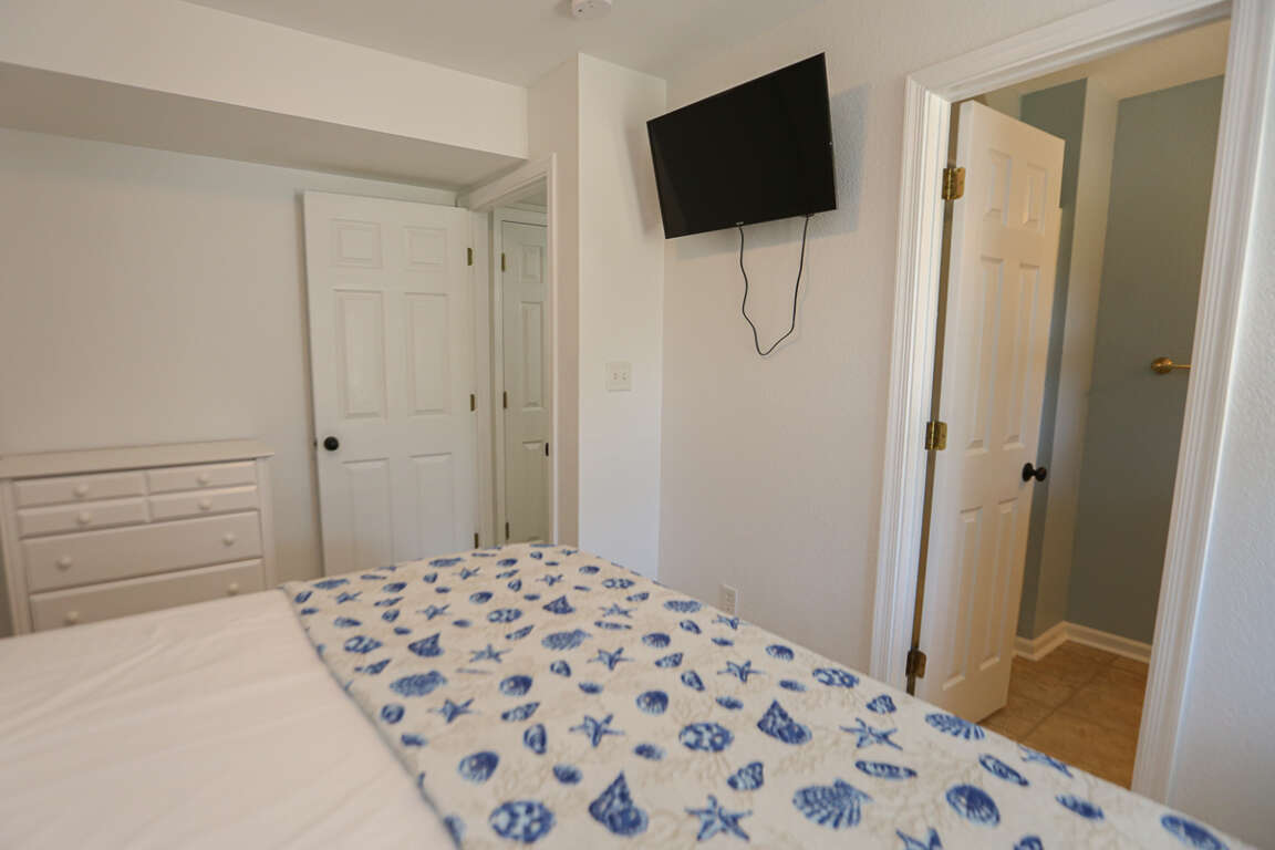 <p>2 Bedrooms (1 with King and flat screen television, and private bath with shower; 1 with King and flat screen television, private bath with shower); rec room with seating area with television, pool table, wet bar with extra full size refrigerator; powder room; laundry closet.</p>