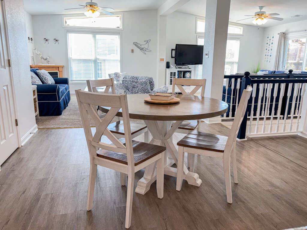 <p>Gathering for meals is easy with ample seating options: a dining table for ten, bar seating at the kitchen, plus a breakfast nook for four. When it’s time to unwind, step outside onto one of the expansive east- or west-facing decks, perfect for enjoying the sunshine all day long. As evening falls, settle in on the front deck to witness breathtaking sunsets over the horizon.</p>