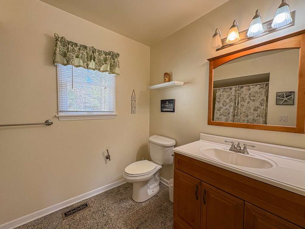 <p>Large eat-in kitchen with granite counters and laundry closet. Kitchen table seats 6 (additional 2 at the kitchen island); Dining Room is adjacent to the kitchen and seats 8, direct access to the rear deck area; Living room with fireplace and TV; 3 bedrooms (1 with King with TV and private full bath; 2 with 2 Double beds each), full hall bath.</p>