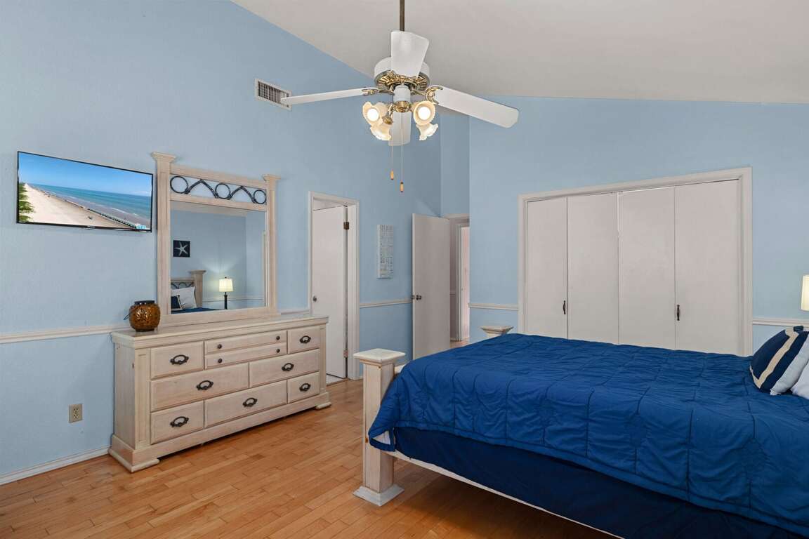 The spacious 4-bedroom house at 132 E. Kingfish St. in South Padre Island, Texas offers a well-designed and comfortable bedroom configuration for guests to enjoy. Here are the unique features of each bedroom: