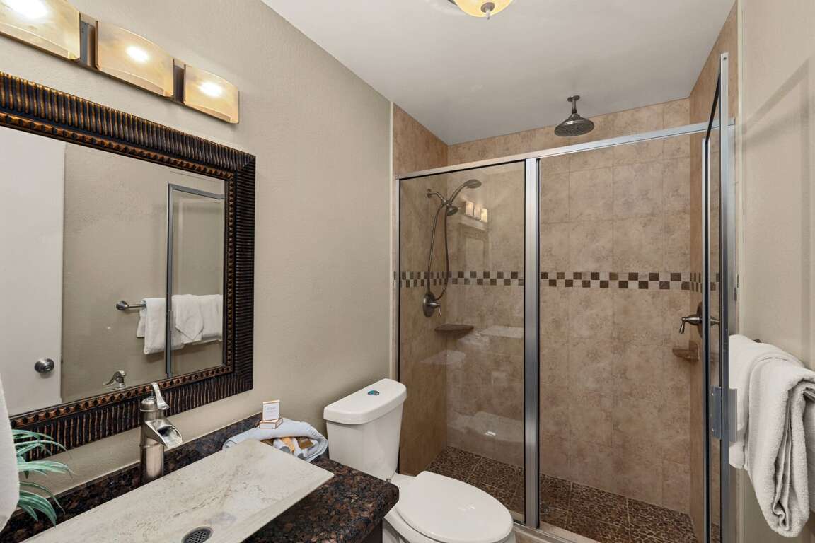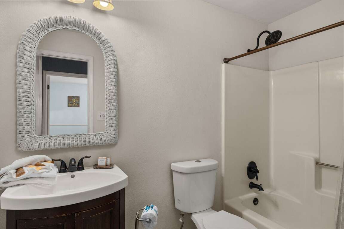 - Guest bedroom: This room is equipped with a Full-size futon and two twin beds (bunks), providing versatile sleeping arrangements for large groups or families.