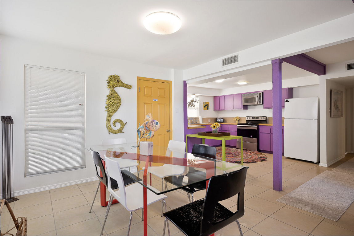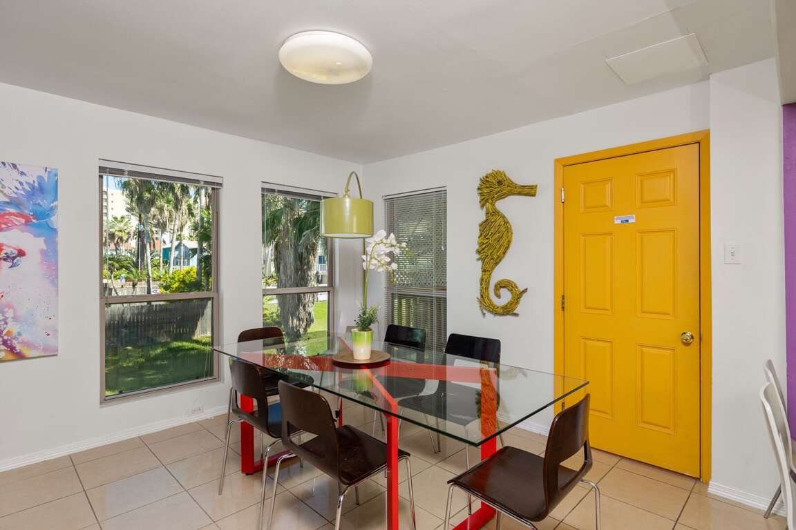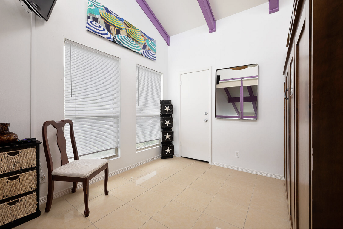 Nestled within the luxurious South Padre Island Rental, Villa #3 offers a charming and cozy atmosphere for guests seeking a peaceful getaway. This two-bedroom, one-bathroom villa boasts a spacious living room with a flat-screen TV, perfect for relaxing after a day of exploring the island. The villa also features a fully equipped kitchen with a dining area, allowing guests to prepare and enjoy their meals in the comfort of their own space. The decor in Villa #3 is bright and coastal-inspired, reflecting the beautiful surroundings of South Padre Island. With its comfortable furnishings and well-appointed amenities, Villa #3 provides the perfect retreat for guests looking to unwind and enjoy their time on the island.