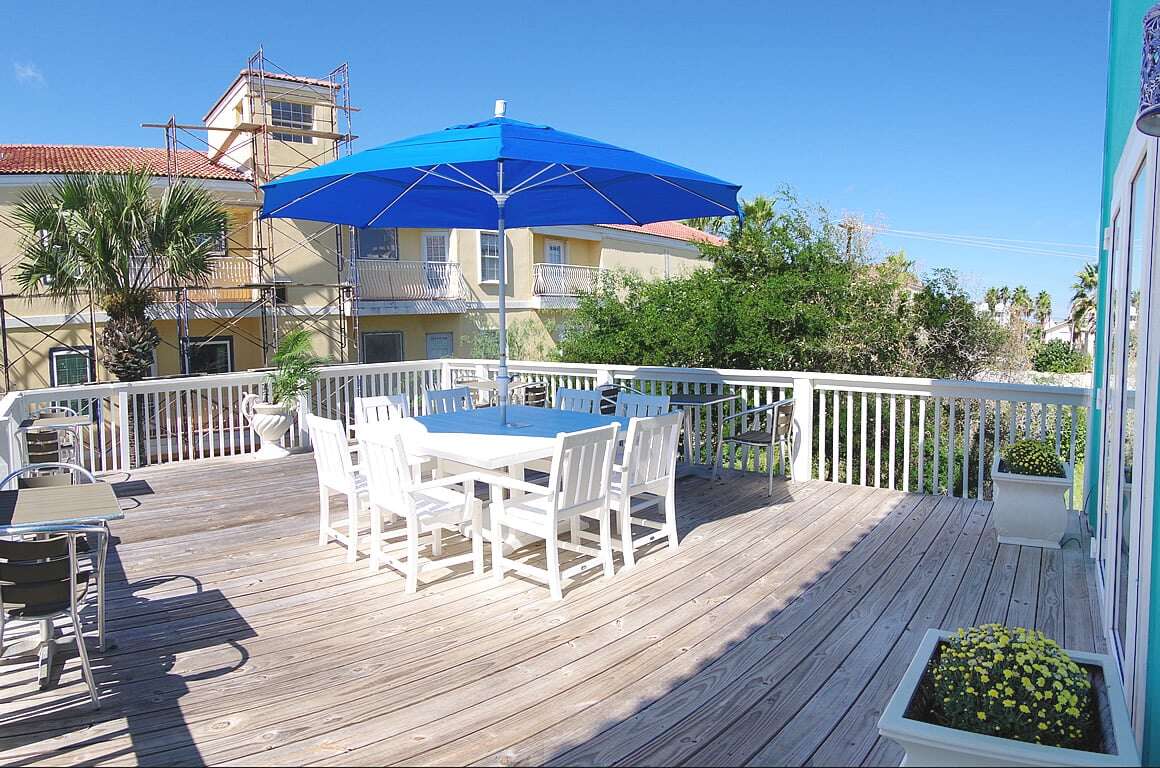 Our luxurious house rental in South Padre Island, Texas not only offers a serene and idyllic location near the beach, but it also provides an incredible outdoor space for relaxation and entertainment. Step into the fenced-in backyard oasis, where you will find a fully equipped outdoor kitchen complete with a mini-fridge and sink. You can effortlessly host a barbecue or cook up a delicious meal while enjoying the fresh ocean breeze. The poolside entertaining area features a bar and grill, perfect for gathering with friends and family. And for ultimate relaxation, the spa/hot tub is available year-round, offering a blissful retreat after a day of outdoor activities. Additionally, the large deck provides breathtaking views of the sunrise and sunset, creating the perfect setting for memorable family meals and evening entertainment.
