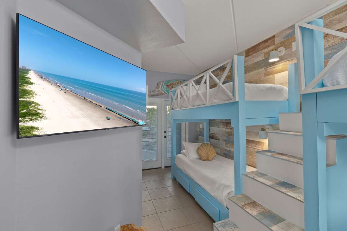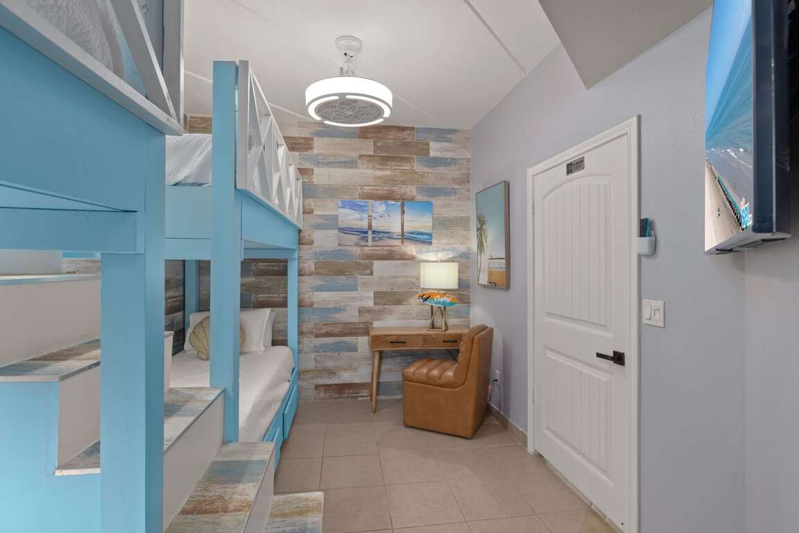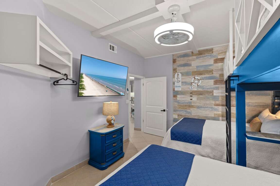Welcome to your newly remodeled 3-bedroom condo, perfectly situated just steps away from the pristine beaches of South Padre Island and the lively Wanna Wanna's Bar and Grill! This coastal retreat offers the ideal blend of comfort and convenience for your next vacation. Relax in the spacious master suite featuring a luxurious king bed, perfect for unwinding after a day of beach activities. In the guest bedroom which is ideal for families or groups, is equipped with two twin-over-queen bunk beds, comfortably sleeping up to six guests. The next guest bedroom, designed with kids/ teenagers in mind, offers four twin XL bunk beds, providing cozy sleeping arrangements for all to enjoy. It also has a desk & chair in case they need a place to write/ draw. Enjoy the convenience of a fully equipped kitchen, updated bathrooms, and stylish furnishings throughout the condo. The open-concept living area is perfect for gathering with family and friends. It has a faux fireplace for ambience, complete with a flat-screen TV and ample seating. Take advantage of the nearby beach access and soak up the sun, swim in the ocean, or engage in exciting water sports. Whether you're seeking a relaxing beach getaway or an action-packed vacation, this condo is the perfect home base for your South Padre Island adventure. Only a short walk to the beach, making it easy to enjoy the sun, surf, and sand at any time. Close proximity to Wanna Wanna's Bar and Grill ensures you have great food, drinks, and live music just around the corner!<br />