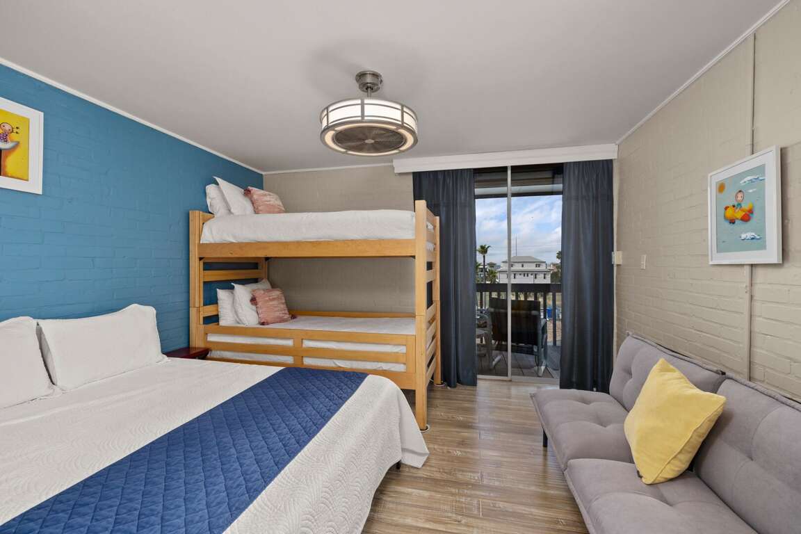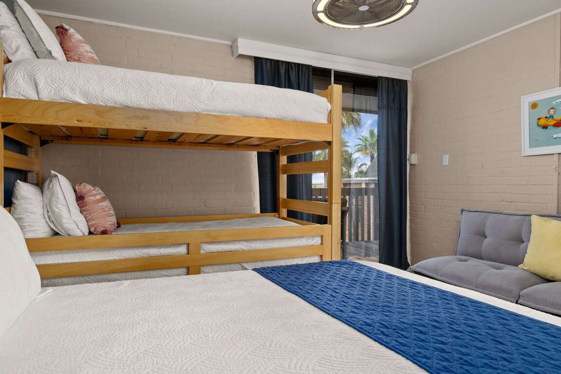 The master bedroom offers a plush king-size bed, creating a quiet space to unwind. In the second bedroom, you’ll find a comfortable queen bed paired with twin bunk beds, making this condo ideal for families or small groups traveling together.<br />