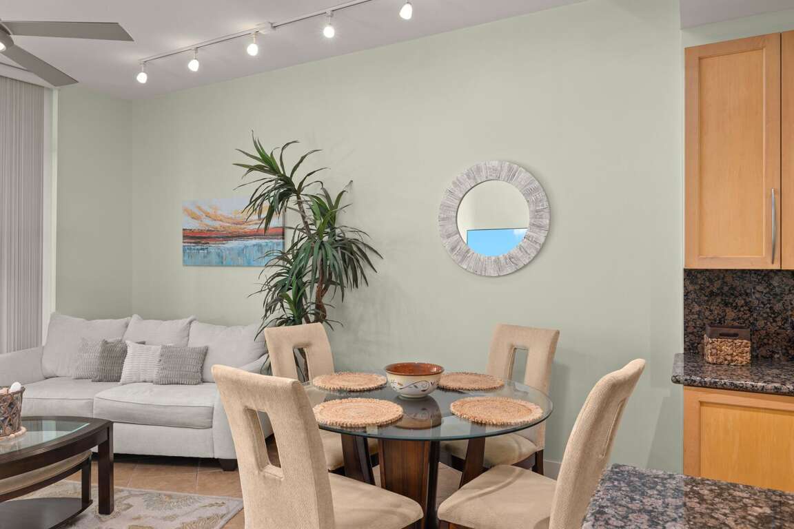 The open-concept living and kitchen area provides stunning beach views and plenty of space to relax. The living room includes a sofa sleeper, perfect for additional guests. Enjoy preparing meals in the fully equipped kitchen with stainless steel appliances, granite countertops, and a large island for dining and entertaining. For added convenience, the condo includes free Wi-Fi and an in-unit washer and dryer.<br />