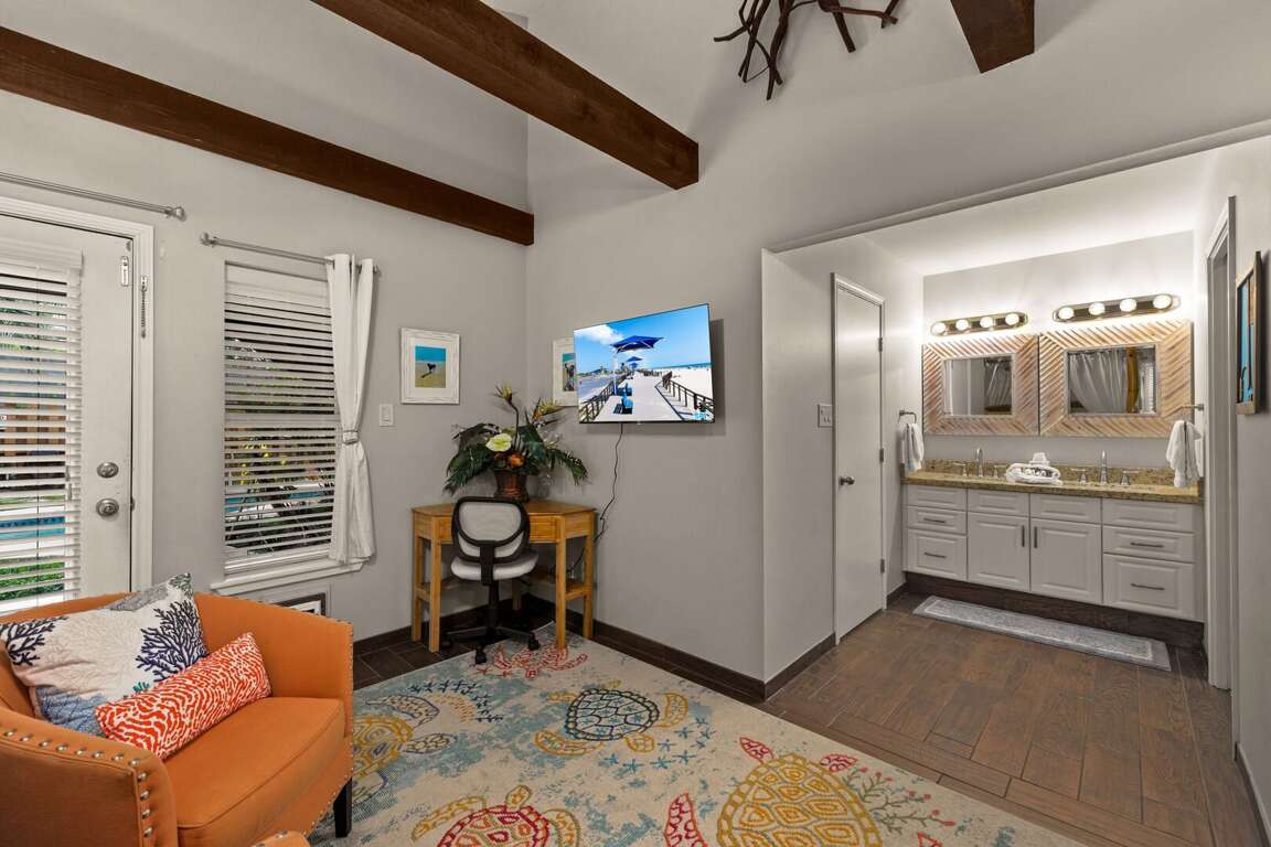 Located at South Padre Island, TX, this oceanfront vacation rental offers the convenience of a fully equipped 3-bedroom cabin with a magnificent mountain view.