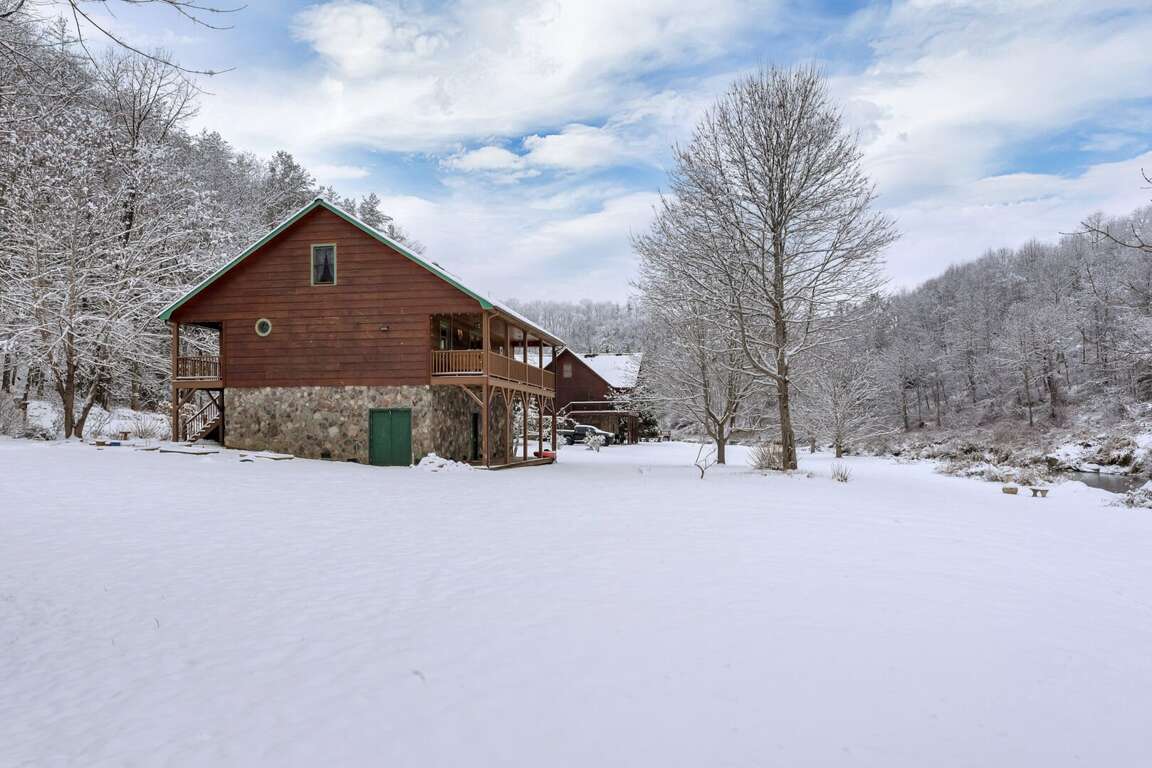 Set off on a cozy getaway at The Pour House in Todd, North Carolina, where modern comforts meet rustic charm in a picturesque log cabin setting near the waters edge. This vacation home offers the perfect blend of relaxation and adventure with its inviting hot tub for unwinding under the stars and easy access to outdoor activities. Imagine soaking in the hot tub, surrounded by nature's tranquility, after a day filled with outdoor adventures like hiking, biking, or fishing. The Pour House also boasts three covered porches, a fire pit for roasting marshmallows, a gas fireplace for cozy evenings, WiFi for staying connected, and A/C for comfort. Experience the best of both worlds at this dog-friendly retreat built in 2006.