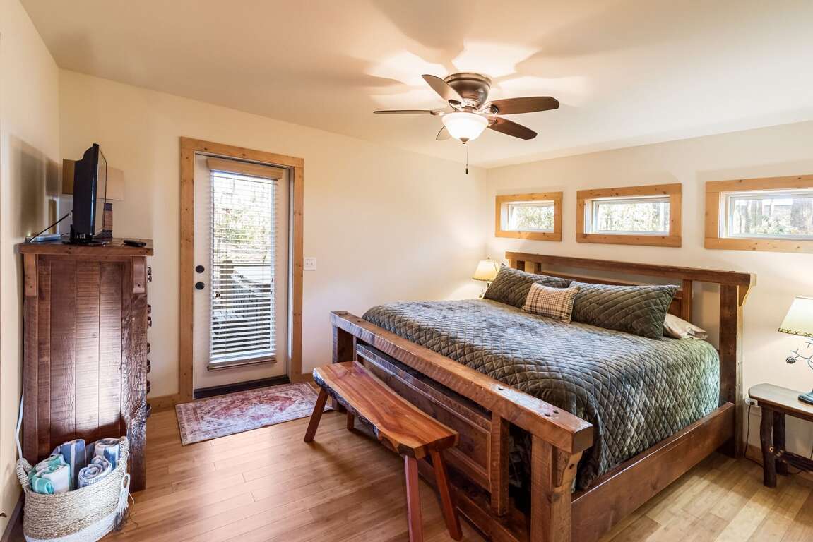 <p><span style="font-size:18px;"><span style="font-family:Arial,Helvetica,sans-serif;"><strong>Sleeping arrangements: </strong>The main level is all yours. A private king bedroom connects to an en-suite bathroom through a sliding barn door. Granite vanity? Check. Full tub/shower combo? You got it. </span></span></p>