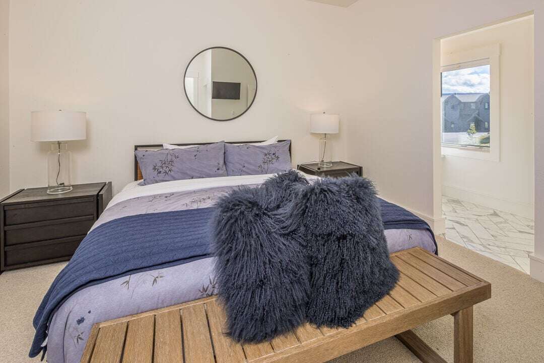 The three bedrooms are thoughtfully appointed, and the upper level master king suite comes with an en-suite bathroom and a twin sleeping nook. An additional full bathroom on the lower level and a half bath on the main level to ensure everyone's comfort. The lower level offers a queen bedroom and a twin over double bunk.