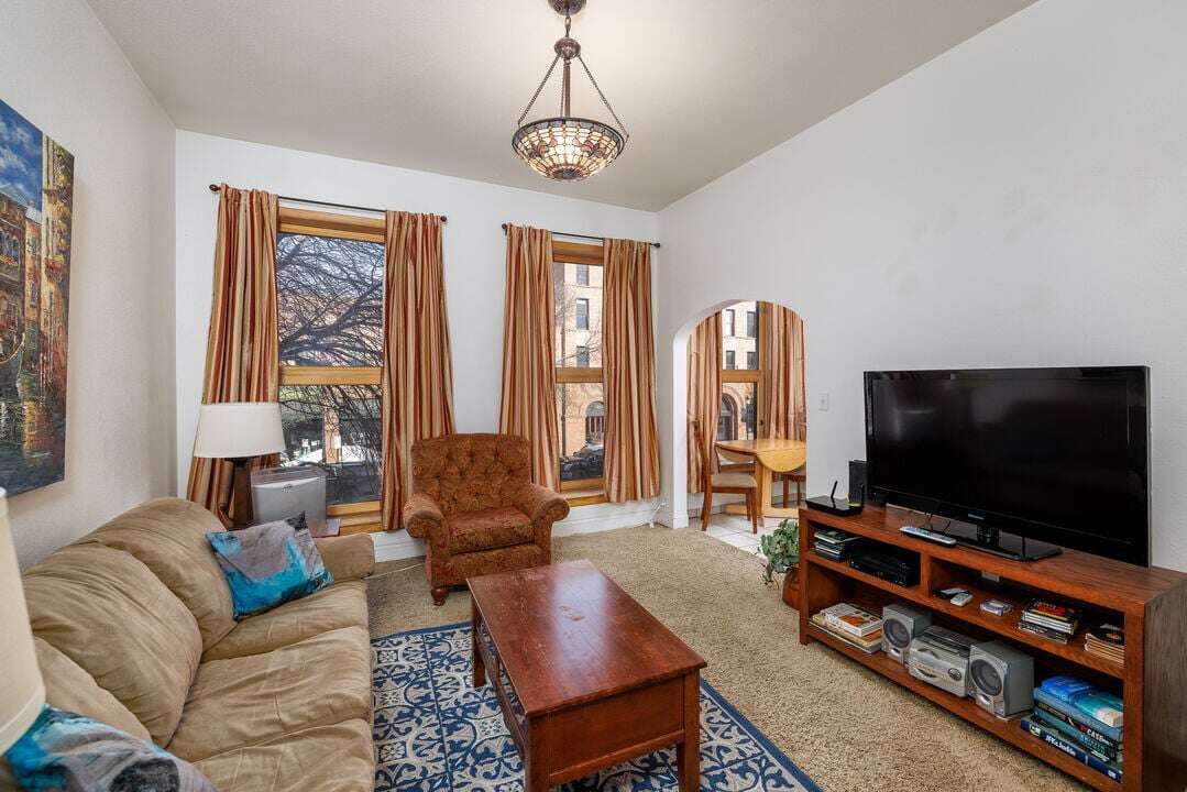 Situated in the heart of the historic district, above a classic Bozeman restaurant and well-established art gallery, Historic Overlook is a stylish one-bedroom apartment that blends historic charm with modern comforts. Beautiful arched doorways and soaring ceilings welcome you, while the large living-room windows frame vibrant views of downtown Bozeman. Steps from boutique shops, restaurants, and galleries, you can soak in the city's energy while enjoying a quiet, elegant stay.