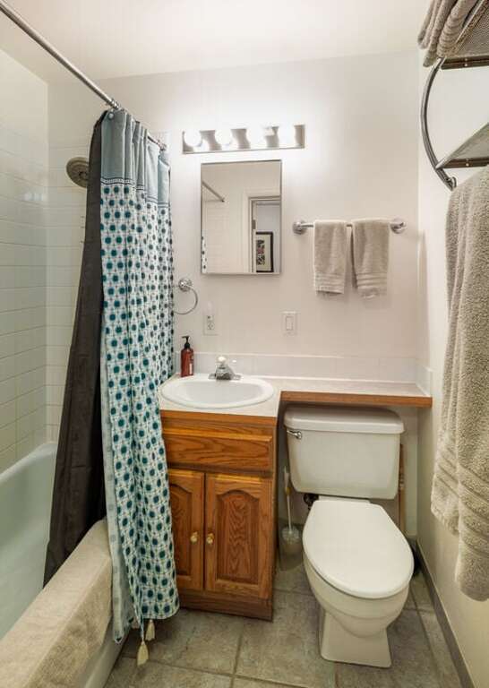 Bathroom 1: Single Vanity | Combo Tub/Shower | Toilet | Main Level