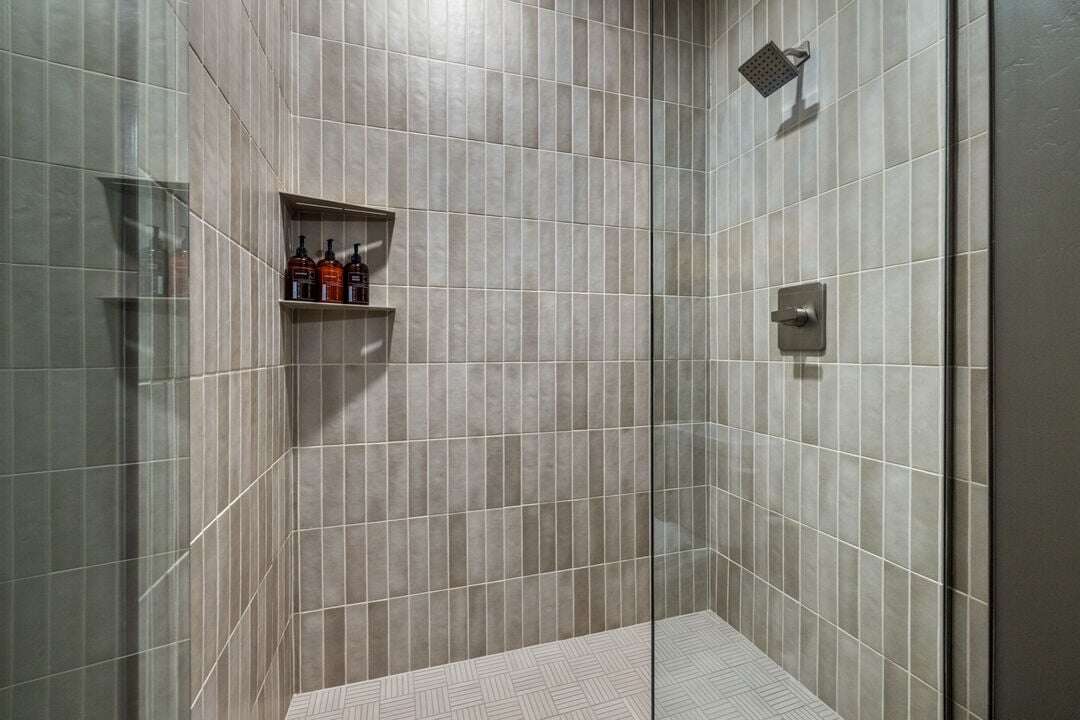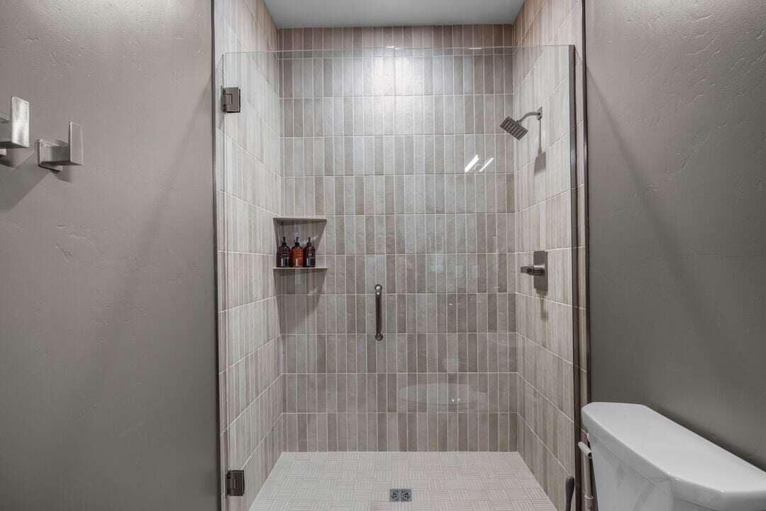 Floor two features 3 bedrooms, 3 bathrooms, and the home’s laundry room. The primary suite offers a king bed and a spa-like ensuite with a custom tile shower. Bedroom 2 offers a queen bed and a spa-like ensuite with a custom tile shower. Bedroom 3, the bunk room, offers a queen bed with a lofted full-size bed. Across the hall is an additional full bathroom that serves the bunkroom; this bathroom offers a tub/shower combination.