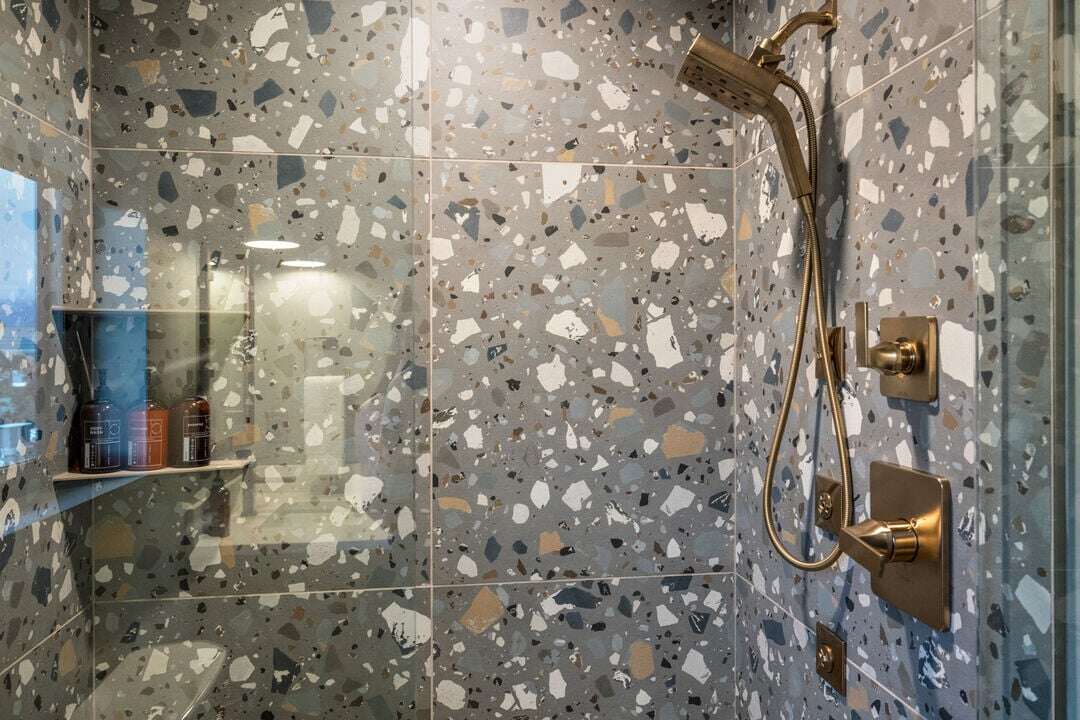 Bathroom 1: Primary Ensuite | Single Vanity | Stand-up Shower | Toilet | Middle Level