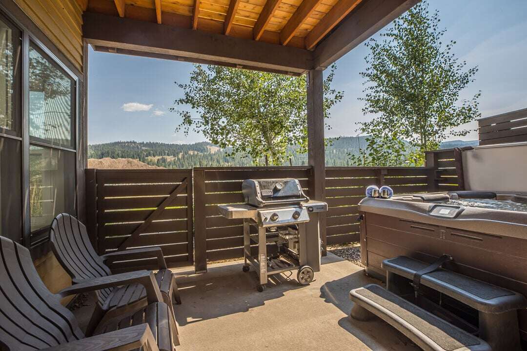 Step outside on the patio to discover your own private hot tub. This is the ultimate spot for easing tired muscles after skiing, sharing a bottle of wine, and soaking in the fresh mountain air. This space makes every stay unforgettable.