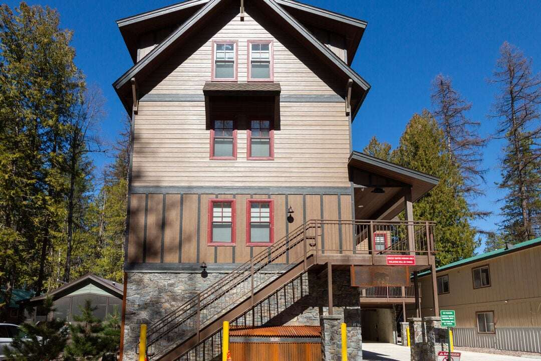 These brand new condos will have plenty of room for four people. The condo can accommodate up to 5 people upon request. On the first floor, you will find the living area, complete with a full kitchen, custom stone fireplace, copper detailing, and space to rest from your adventures. As you explore the second and third floors, you will find two bedrooms, each with its own king bed. While in these suites, you will notice that everything was carefully constructed, from the local wood detailing to the electric fireplace and Glacier art throughout the condo. Each condo comes with its own washer, dryer, and mini-split for AC and Heat. You won't find anything like these Grizzly Suites, as they are the first luxury suites in Glacier National Park.