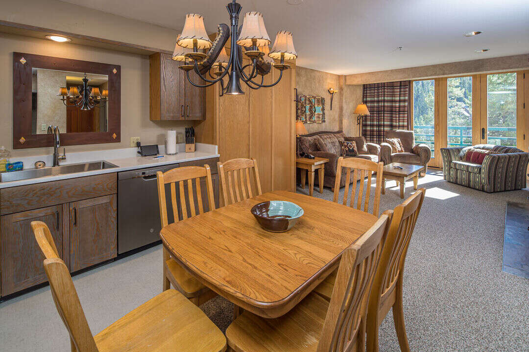 This 1-bedroom, 2-bathroom condo sleeps 6 with a king master bedroom and a Murphy bed in the spacious living room. The open design offers an area for everyone to spread out and tell their favorite stories of the unbeatable experiences had throughout the day. The kitchen, with a dining table that seats 6, is open and has everything you need to cook breakfast before heading out for a day of adventure!
