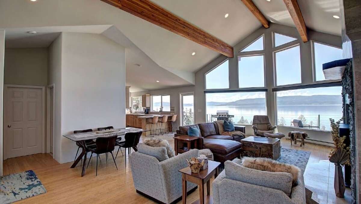 Wake up to sweeping views of Flathead Lake, framed by towering wood-beam ceilings and walls of windows at Bear Dance Orchard. This modern, elevated lake home sits peacefully on a cherry orchard with expensive views of Flathead Lake. Offering a rare setting where guests can stroll in the quiet rows of trees while taking in wide-open lake views and fresh Montana air.