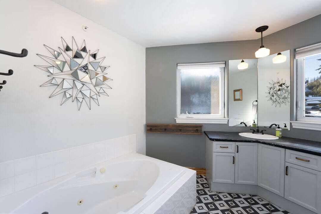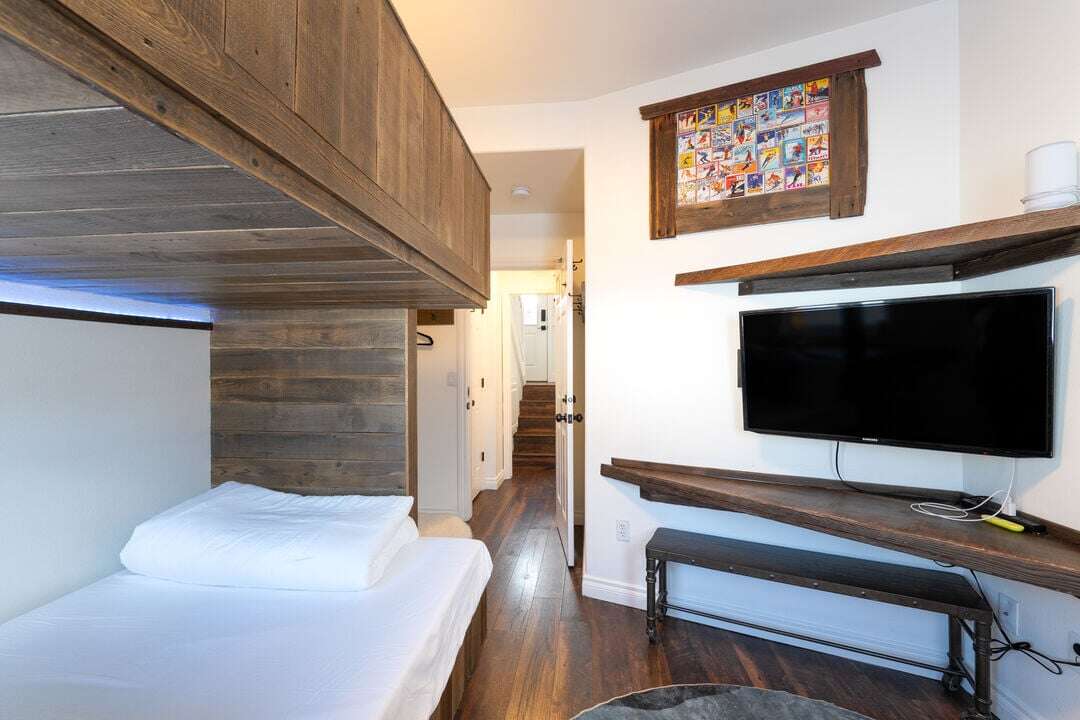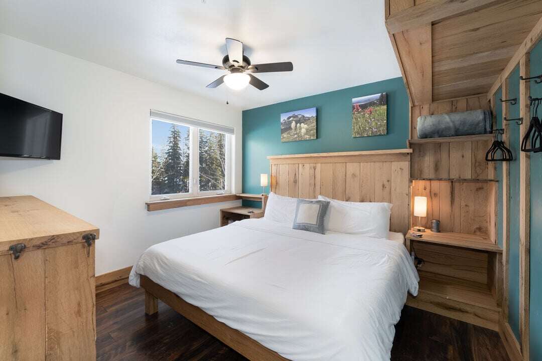 Inside, the thoughtfully refreshed home with a clean alpine aesthetic is an inviting space that feels both cozy and refined. The bunk bedrooms both feature full over full bunk beds, with one room having an additional full bed. The peaceful primary bedroom with king-size bed and custom wood details offering a relaxing space to unwind after exploring. Open living areas makes for easy gathering and access to the deck to breathe in the fresh alpine air.