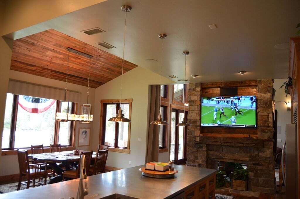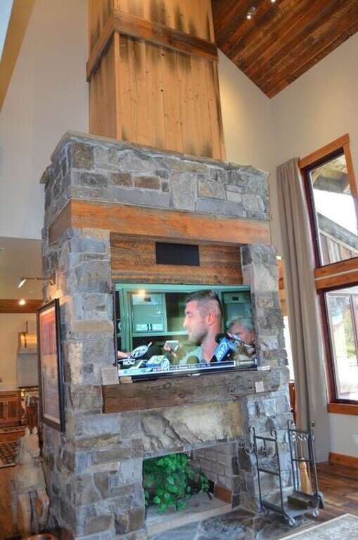 The spacious family room offers breathtaking views of the water and Montana’s majestic vistas through a 24-foot tall wall of windows. A double-sided fireplace, shared with the kitchen, and two 70-inch flat-screen TVs create a warm and entertaining atmosphere. The kitchen and dining area are outfitted with high-end stainless steel appliances and countertops. Enjoy meals with a view, thanks to the dining room’s large windows. For alfresco dining, step out to the additional covered porch with a table and chairs. Next to the water, you’ll find a covered outdoor kitchen, complete with a stove and BBQ for delightful outdoor cooking experiences. Experience the best of Montana’s natural beauty and luxury at Eagles Nest, your perfect destination getaway.