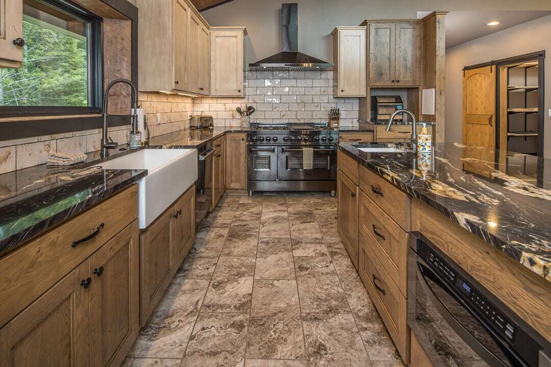 The grand entrance leads to a welcoming and adorned living area with a striking chandelier and large windows overlooking the mountains. The first floor houses the primary living area, featuring an open-concept design that seamlessly combines the living room, dining area, and one of the kitchens. Vaulted ceilings, and a floor-to-ceiling stone fireplace create a warm and inviting ambiance. The gourmet kitchen boasts top-of-the-line appliances, granite countertops, and a large central island, perfect for preparing family feasts. Additionally, the first floor includes a cozy living area, perfect for unwinding with a book or enjoying intimate conversations, while a well-appointed guest bedroom with an en-suite bathroom offers privacy and comfort to visiting friends or family. The kids room is also located on this level.