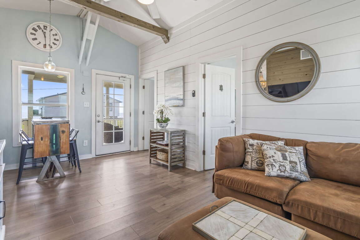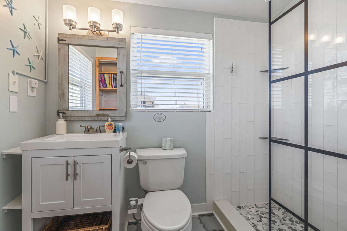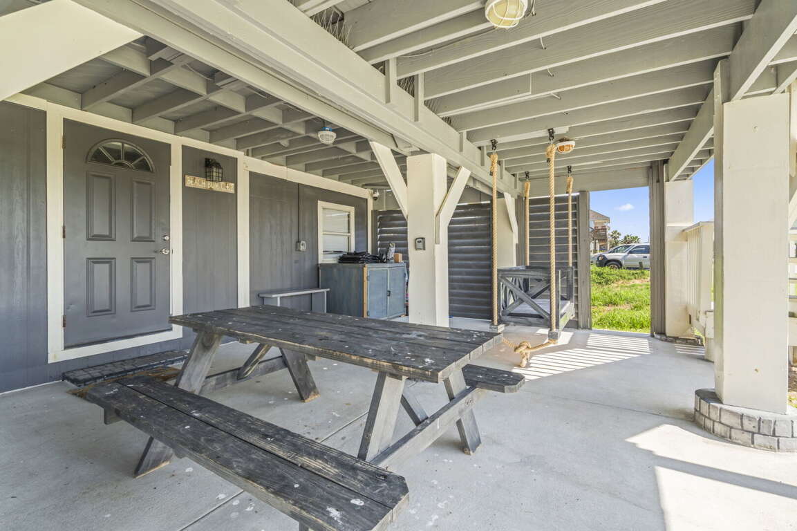 Wake up to the sound of waves and sip coffee on a breezy covered deck with a front-row view of the Gulf. This classic West End beach bungalow blends easy, barefoot living with thoughtful updates: central A/C, bright engineered wood floors, and an upgraded kitchen and bath for effortless post-beach cleanup. The main level offers two comfortable bedrooms and a full bath, while a flexible ground-level bedroom/living suite with its own full bath adds privacy for early risers, in-laws, or another couple. After sandy adventures just steps from the shoreline, rinse off in the hot/cold outdoor shower, stash your gear downstairs, and gather around the backyard fire pit for s’mores under the stars. You’ll be on a quieter stretch of beach yet minutes from island dining, groceries, and attractions along the Seawall and The Strand. On-site parking, deck seating with ocean views, and simple, clean finishes make this a relaxed coastal home base for families and friends looking to unwind, explore, and make memories by the water.