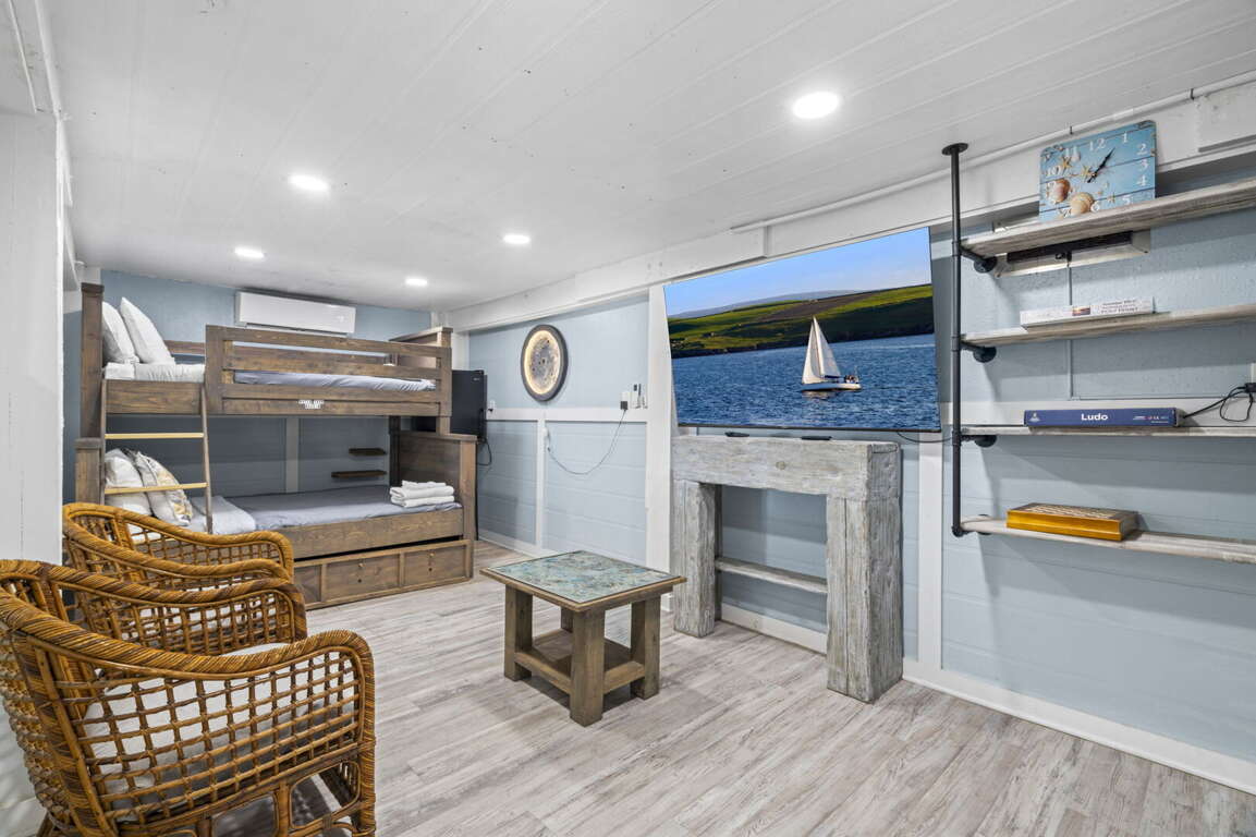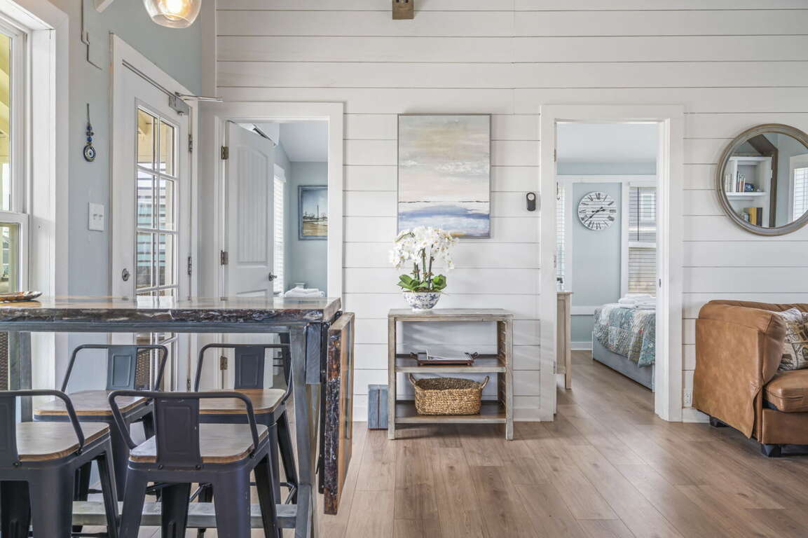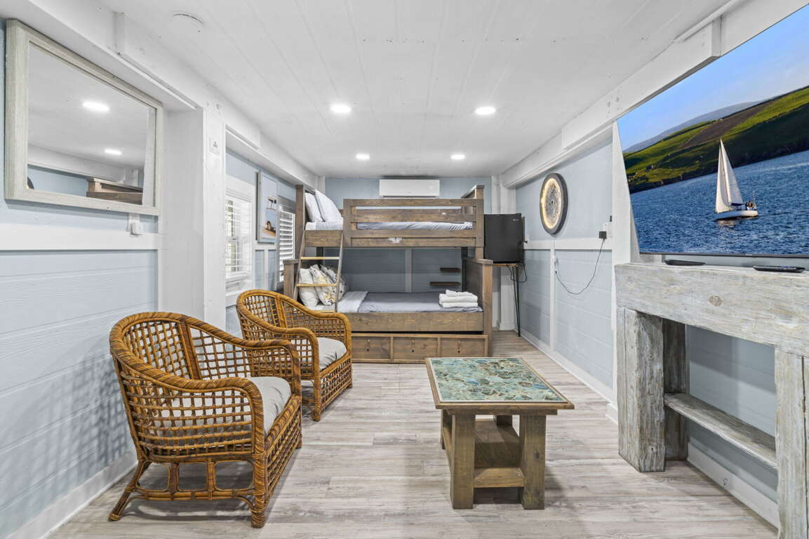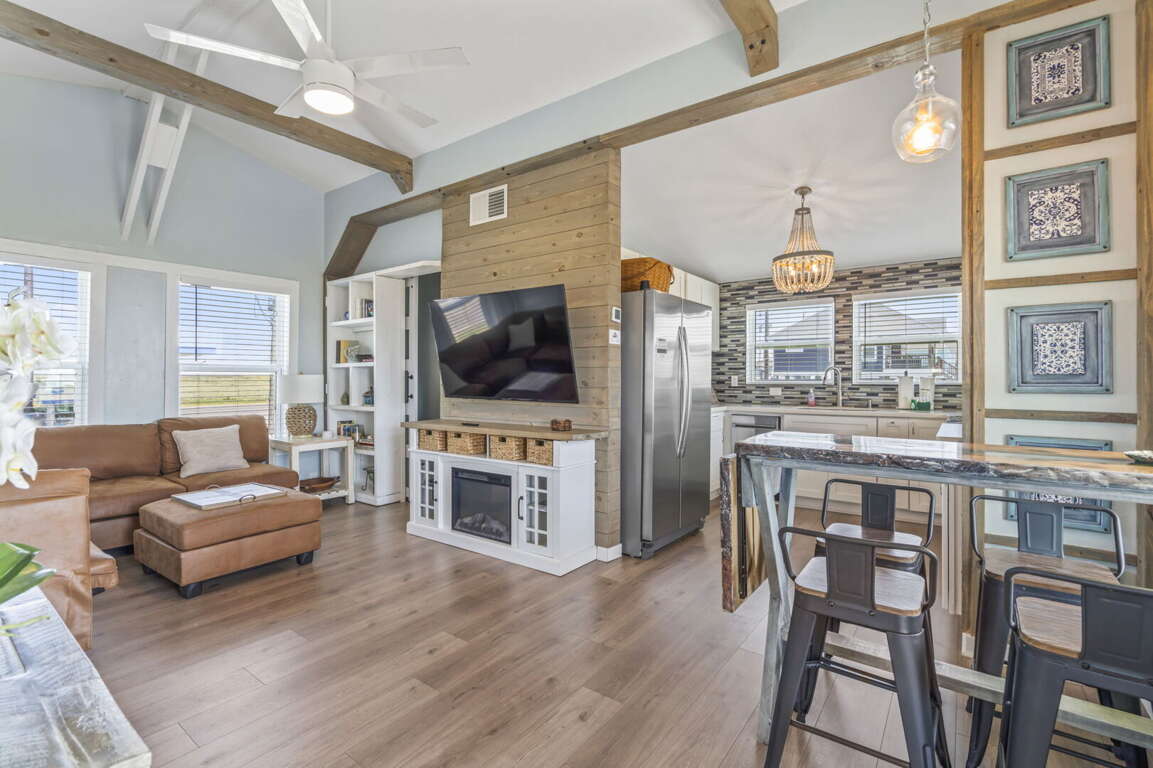 Wake up to the sound of waves and sip coffee on a breezy covered deck with a front-row view of the Gulf. This classic West End beach bungalow blends easy, barefoot living with thoughtful updates: central A/C, bright engineered wood floors, and an upgraded kitchen and bath for effortless post-beach cleanup. The main level offers two comfortable bedrooms and a full bath, while a flexible ground-level bedroom/living suite with its own full bath adds privacy for early risers, in-laws, or another couple. After sandy adventures just steps from the shoreline, rinse off in the hot/cold outdoor shower, stash your gear downstairs, and gather around the backyard fire pit for s’mores under the stars. You’ll be on a quieter stretch of beach yet minutes from island dining, groceries, and attractions along the Seawall and The Strand. On-site parking, deck seating with ocean views, and simple, clean finishes make this a relaxed coastal home base for families and friends looking to unwind, explore, and make memories by the water.