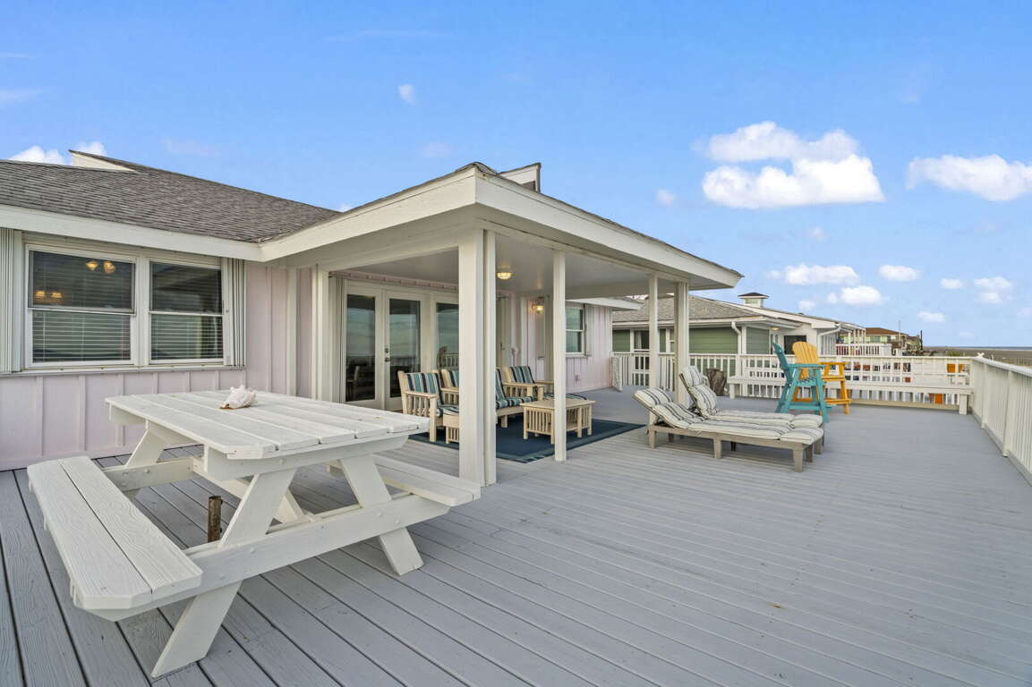 Experience relaxed coastal living at this beautifully updated 3-bedroom, 2-bath beachfront home in Galveston. With sweeping Gulf views, an expansive ocean-facing deck, and direct beach access just steps away, this home offers the perfect blend of comfort, scenery, and location.